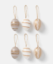 Този пакет от 6 шарени яйца на райета предлага всичко необходимо, за да освежите дома, колата или офиса си. Изработени от пластмаса, тези шарми са леки, издръжливи и напълно безопасни за деца и домашни любимци. Всяко от шестте яйца е с ярки цветове, а компактният им размер ги прави идеални за окачване навсякъде, където искате да добавите нотка пролетен чар.