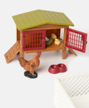 Комплектът фигурки на пиле с аксесоари е прекрасна играчка за всяко дете, което обича животните и обича да създава свои собствени истории! Комплектът включва фигурки на пиле и пиленце, кокошарник, както и аксесоари под формата на кошара с яйца и купа за хранене. Комплектът развива въображението, социалните умения и любовта към животните. Играчката е подходяща за деца над 3-годишна възраст.