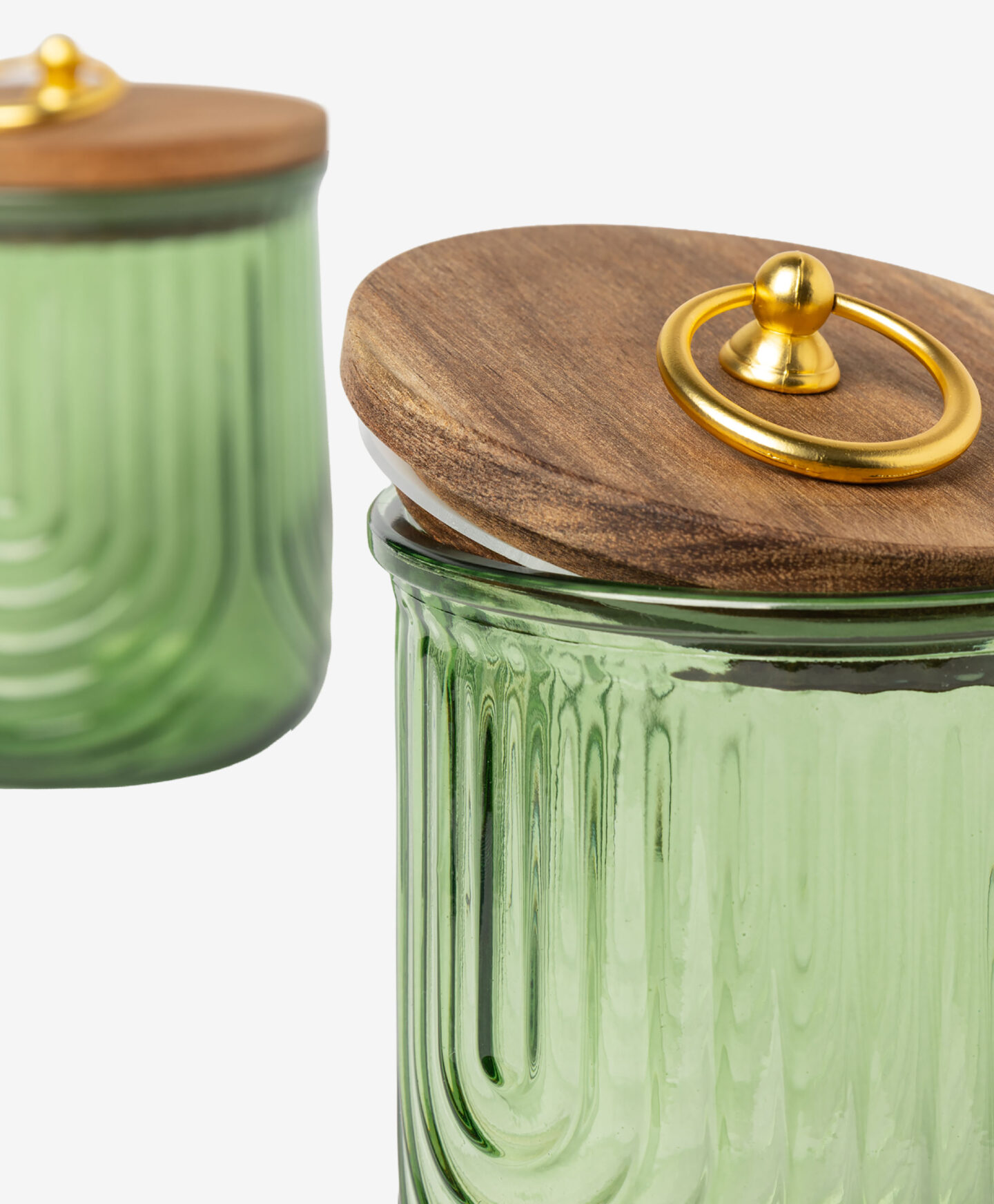 Комплектът от два стъклени буркана съчетава функционалност и елегантен дизайн. Подходящи за кухнята или банята, с дървен капак, който осигурява добро уплътнение и свежест на съдържанието..