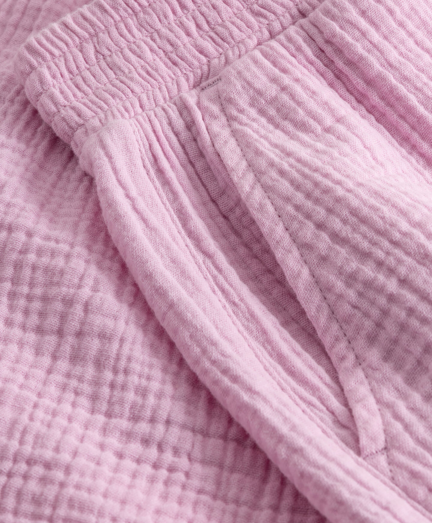 Късите панталони за момичета от 100% памучен муселин са символ на лятната мода и свобода. Еластична талия осигурява комфорт, а естественият материал е мек и щадящ чувствителната кожа. Розовият нюанс подхожда на всеки летен стил и му добавя момичешки чар. Перфектни за плаж, разходка в парка или летни пътувания!