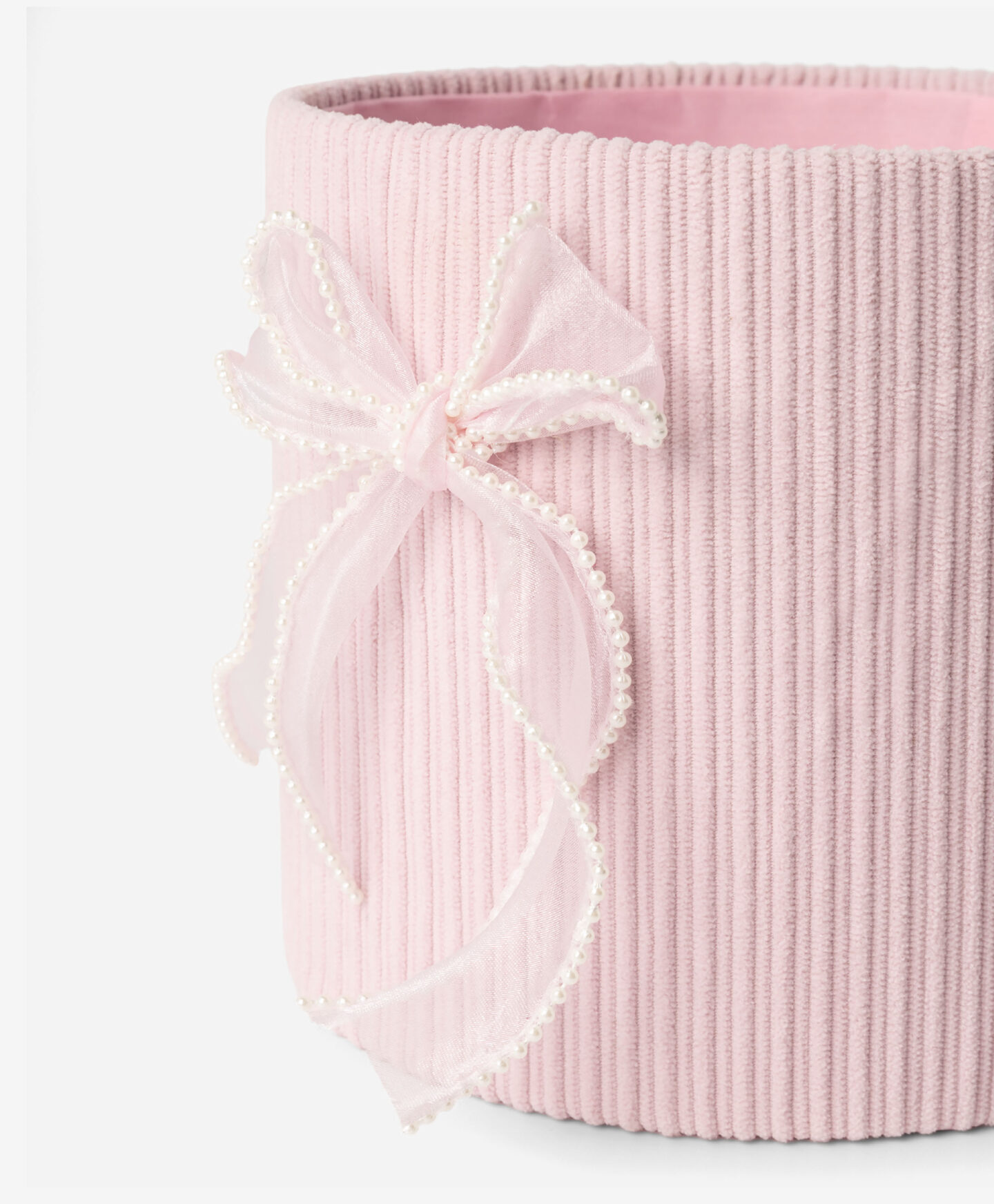 Малката кръгла кутия с панделка е дискретно допълнение към всяка стая. Тя е идеална за съхранение на малки предмети като бижута, ключове или други дрънкулки, или като декорация. Липсата на капак позволява бърз достъп до съдържанието. Стилният ѝ дизайн означава, че можете да я поставите както на нощно шкафче в спалнята, така и на бюро в офиса.