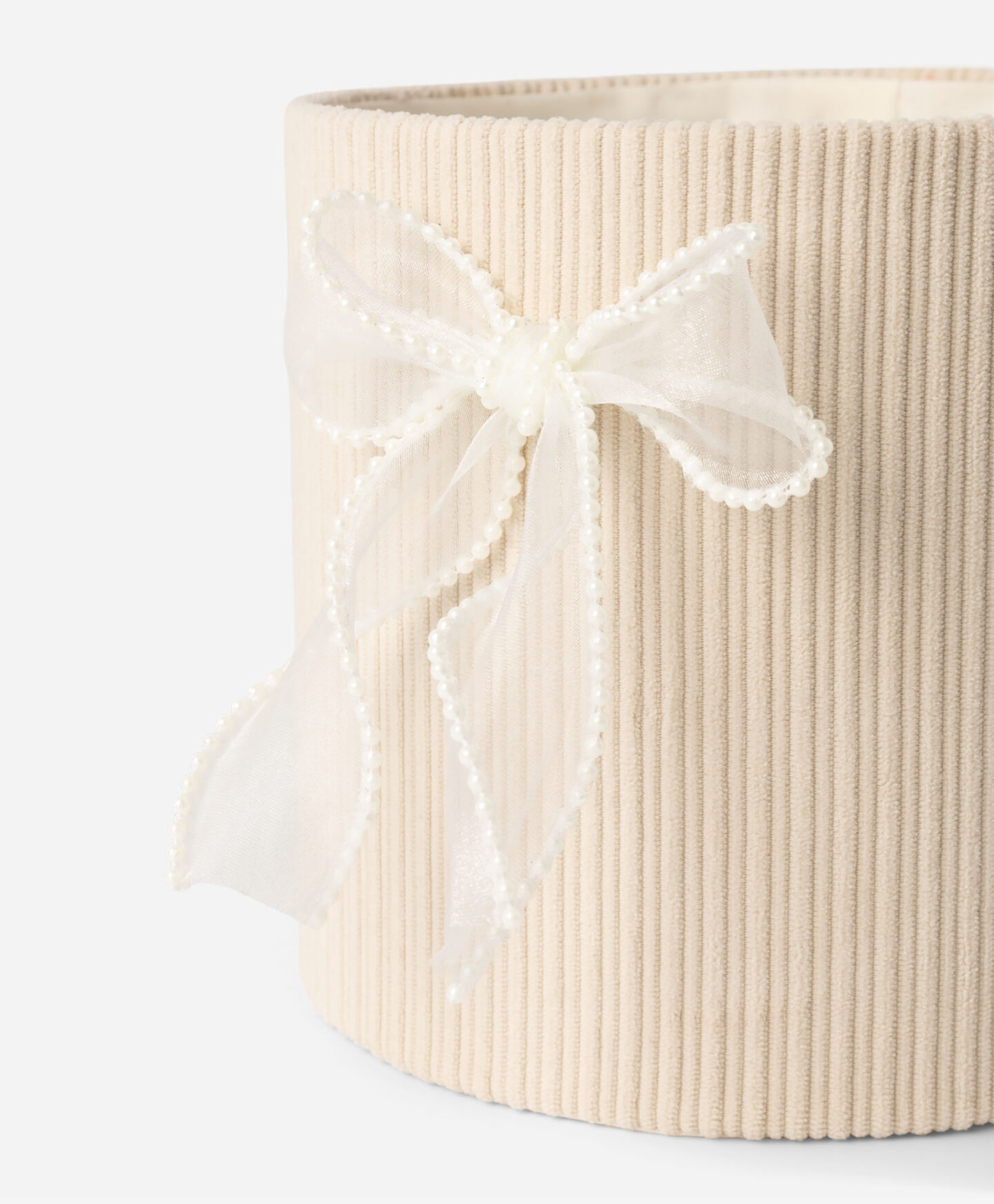 Малката кръгла кутия с панделка е дискретно допълнение към всяка стая. Тя е идеална за съхранение на малки предмети като бижута, ключове или други дрънкулки, или като декорация. Липсата на капак позволява бърз достъп до съдържанието. Стилният ѝ дизайн означава, че можете да я поставите както на нощно шкафче в спалнята, така и на бюро в офиса.
