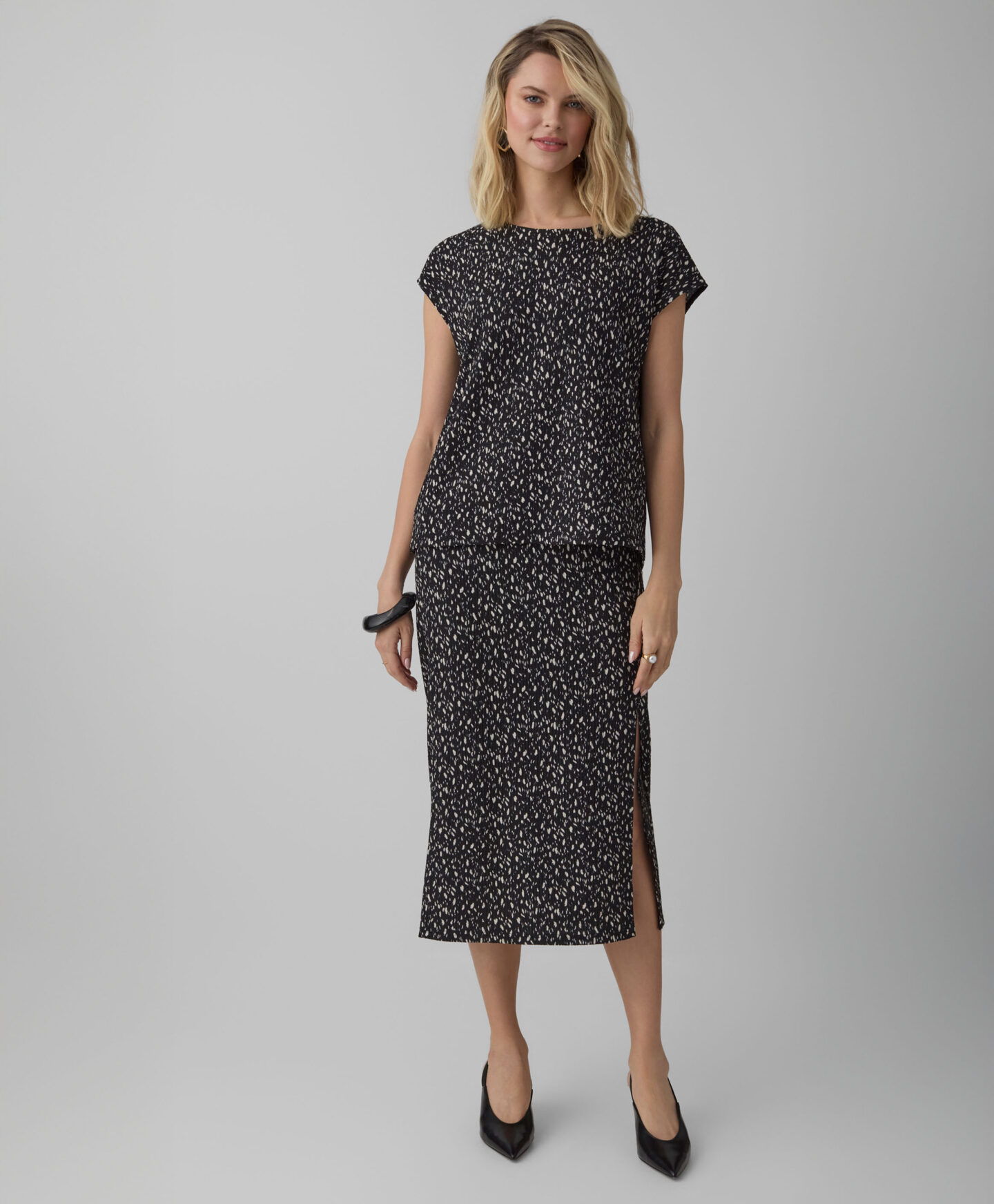 Намачкана пола с шарки създава комплект с риза с къс ръкав от колекцията. Още те очаква в Pepco!: