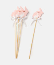Този пакет от 4 декорации с фигурки зайчета и панделки е елегантна декорация, вдъхновена от великденските символи. Идеален за декориране на кошници, саксийни растения или букети. Предлага се в различни дизайни.