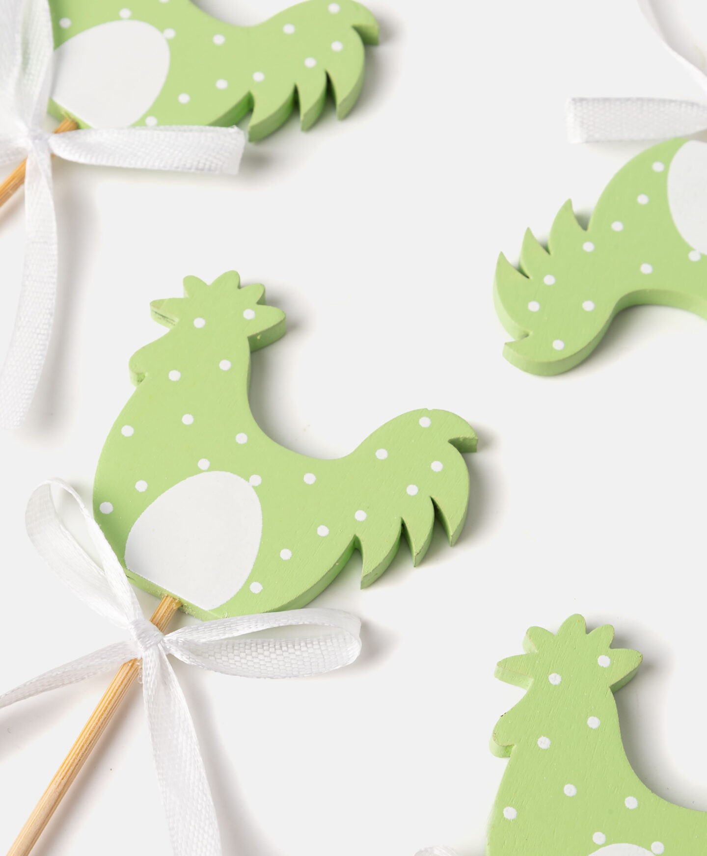 Този пакет от 4 декорации – петел и лък – е елегантна декорация, вдъхновена от великденските символи. Идеален за декориране на кошници, саксийни растения или букети. Предлага се в различни дизайни.
