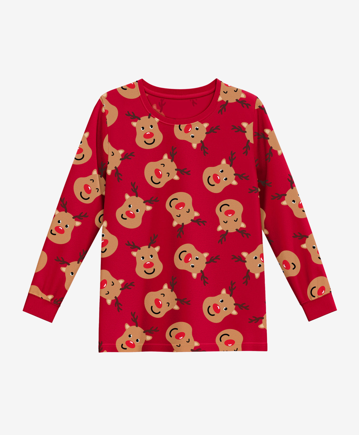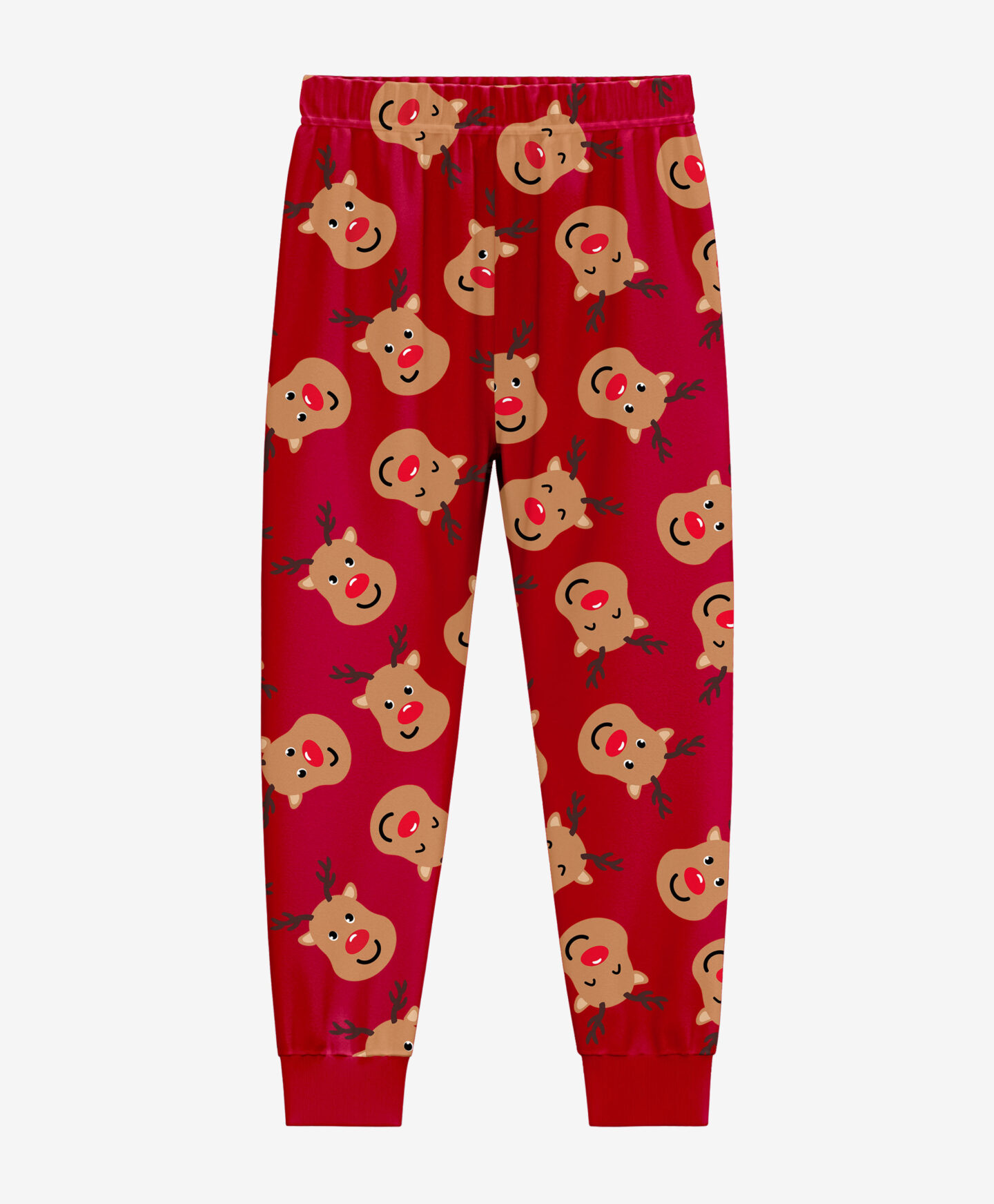 Пижамата за момче с елени, изработена от 100% памук, се състои от тениска с дълъг ръкав и панталон, което я прави идеална за по-хладни нощи. Мекият и дишащ памук осигурява комфорт и топлина за детето, осигурявайки му спокоен сън. Празничният дизайн внася радостна атмосфера в дома.