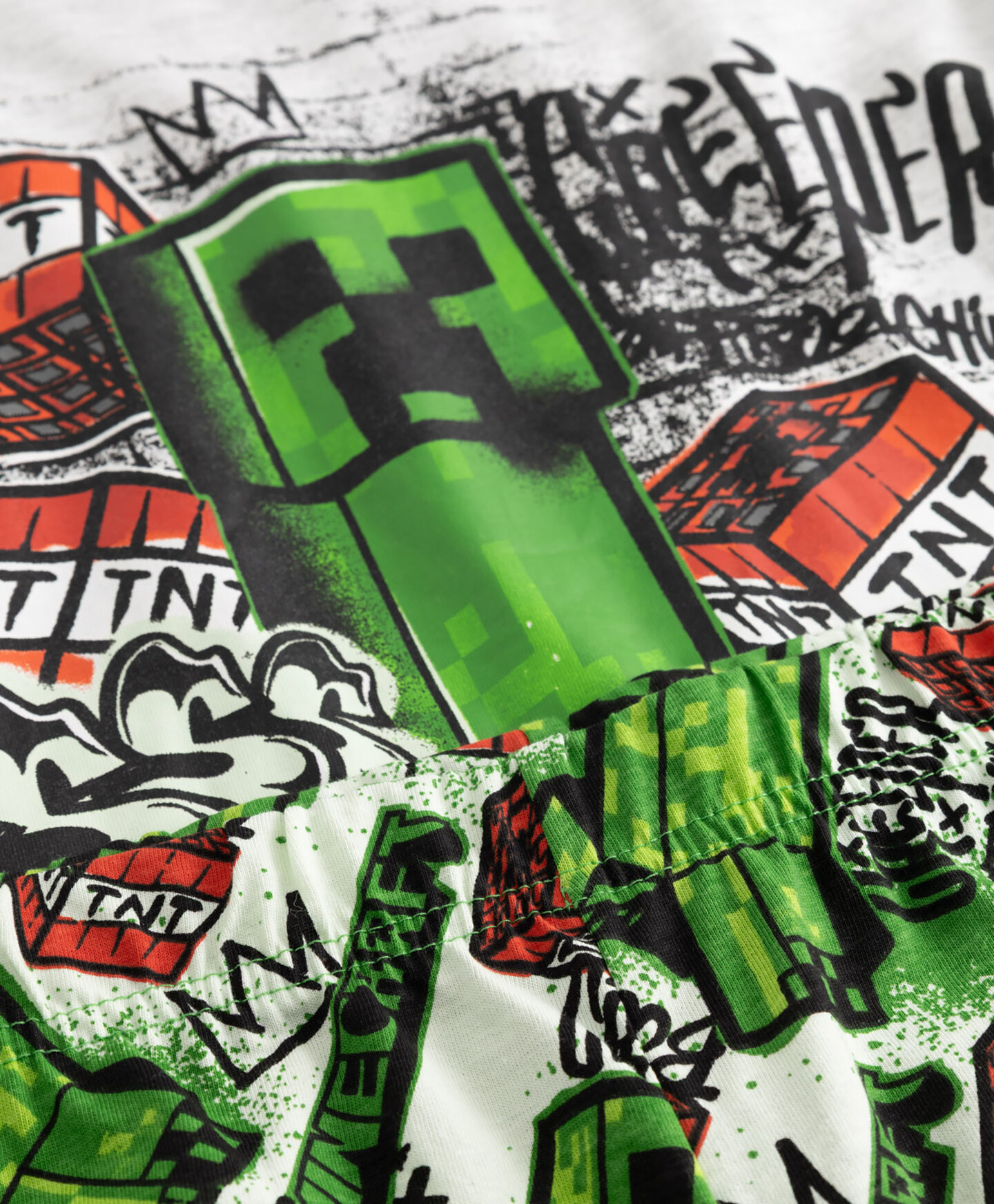 Пижамата за момчета Minecraft е създадена за истински фенове на емблематичната игра. Свободната кройка на тениската и късите панталони не ограничава движенията. Материята е мека, безопасна за кожата и ѝ позволява да диша свободно.