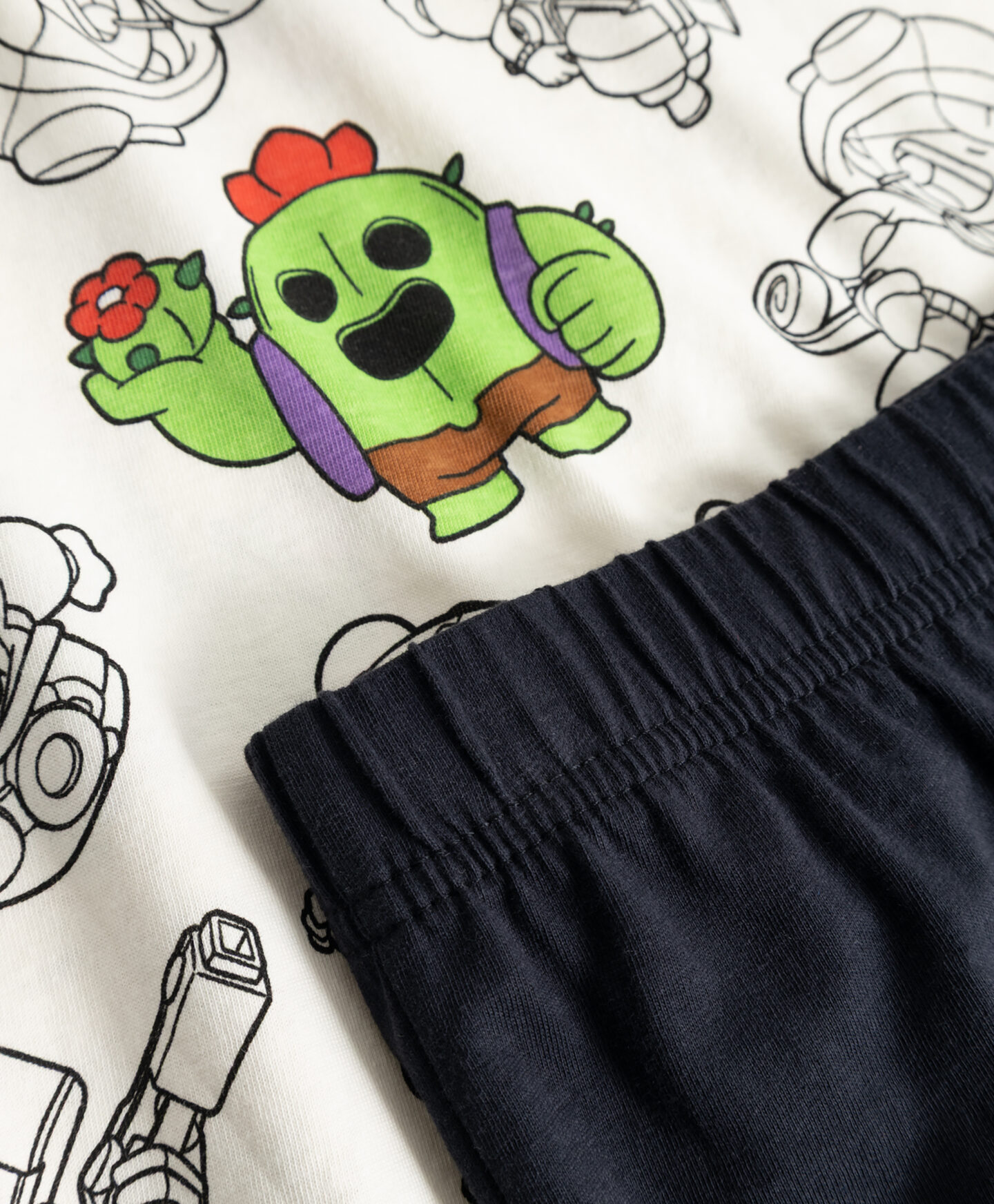 Пижамата за момчета Brawl Stars, изработена от 100% памук, е подходяща за феновете на емблематичната игра. Комплектът се състои от тениска и къси панталони, така че е чудесен за по-топлите нощи. Материята е приятна за кожата и нежно обгръща детето за сън, а класическата кройка гарантира свобода на движение. Предлагат се различни дизайни.