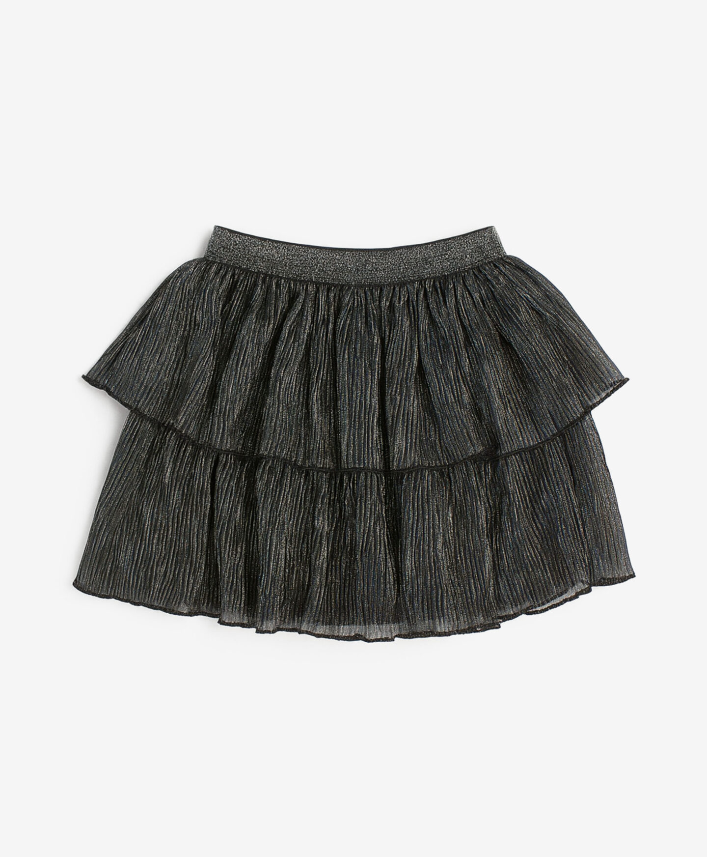 Момичешката пола с лъскав конец е ефирна, лека и модерна. Тя ще бъде чудесна за семейни събирания или забавления в училище. Удобната еластична талия осигурява перфектно прилягане.