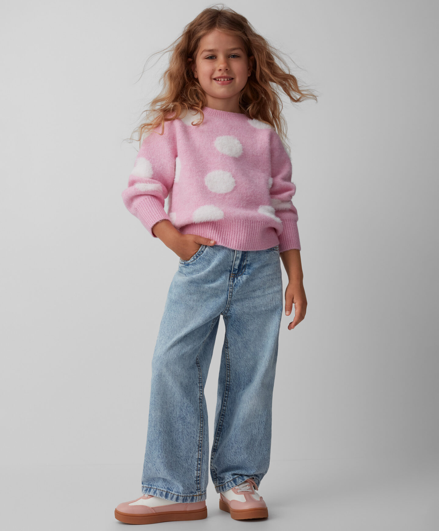 Пуловерът на точки за момичета е идеален за малки любителки на розовото! Той е топъл, мек и нежен към кожата, което го прави идеален за хладните дни. В комбинация с дънки, клин или пола, той ще добави нотка шик в коридорите на предучилищната и училищната възраст. Предлага се в разнообразие от шарки.