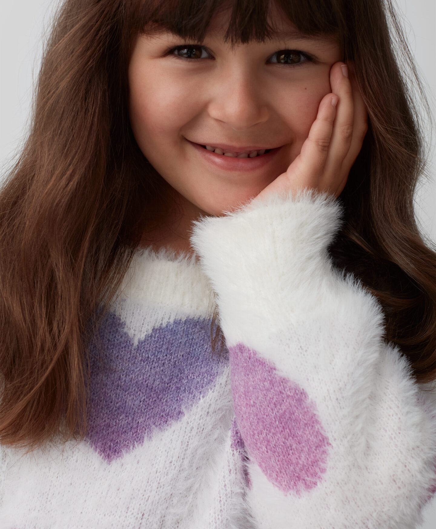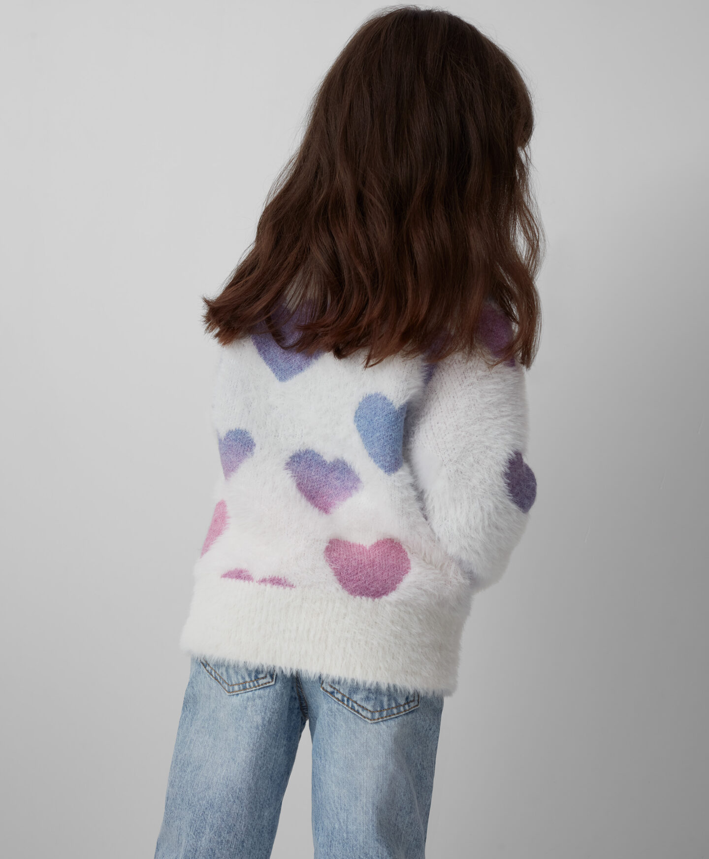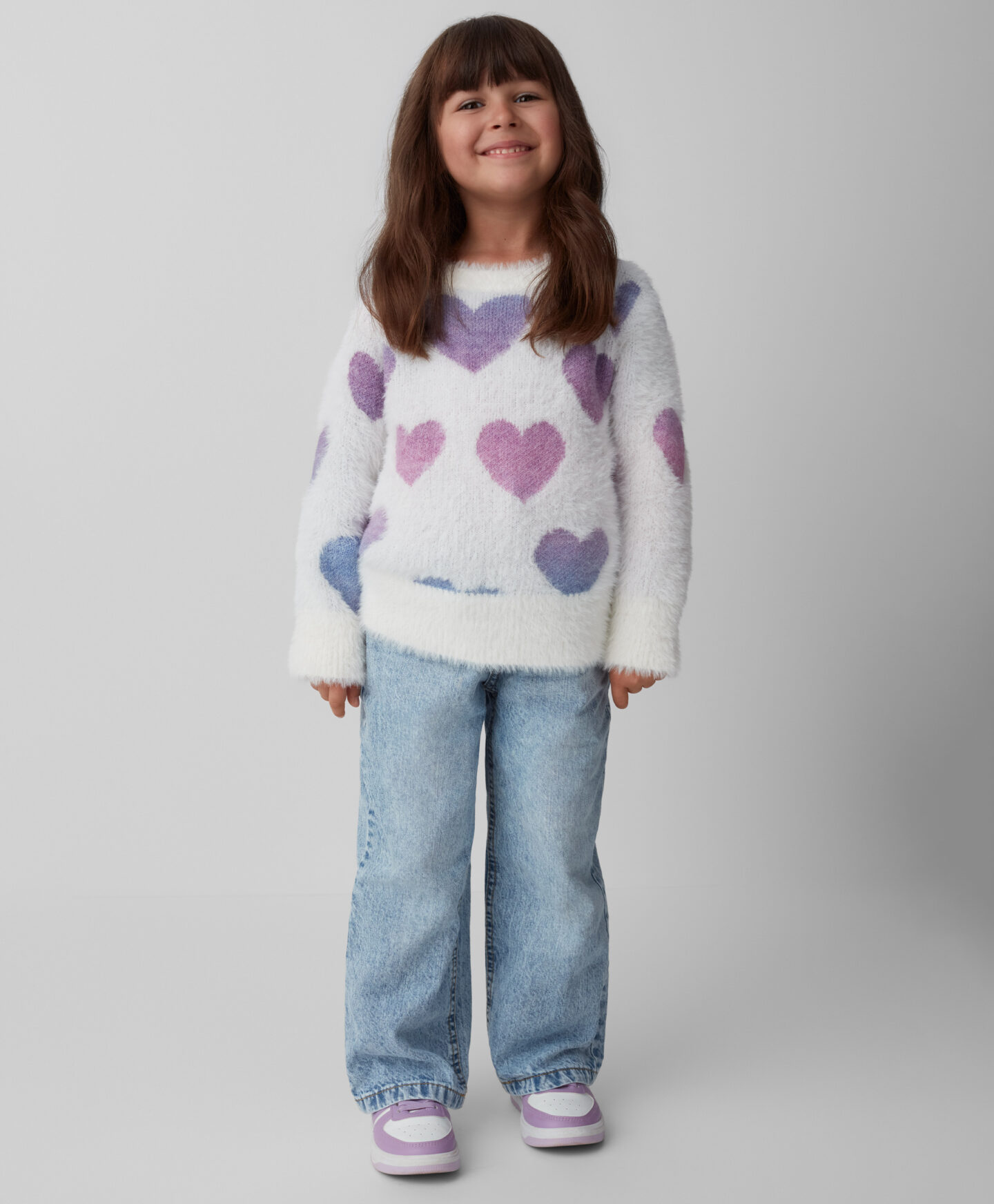 Пуловерът за момичета с шарка на сърце е идеален за малки любители на комфорта и топлината. Очарователният му дизайн го прави мек и приятен на допир. Идеален за есенните и зимните хладни дни, той е перфектен избор за предучилищна възраст, училище или свободно време. Съчетава се перфектно с дънки и клинове.