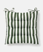 Водоустойчивата възглавница за седалка с райета осигурява комфорт по време на срещи на открито. Изработена е от мек, приятен материал, който превръща всеки стол в удобно място за сядане. Класическият шарен модел добавя модерен характер към балконската аранжировка. Водоустойчивото покритие предпазва възглавницата от дъжд, роса и мръсотия и я прави лесна за почистване. Възглавницата има връзки за закрепване към стола. Предлагат се два шарки.
