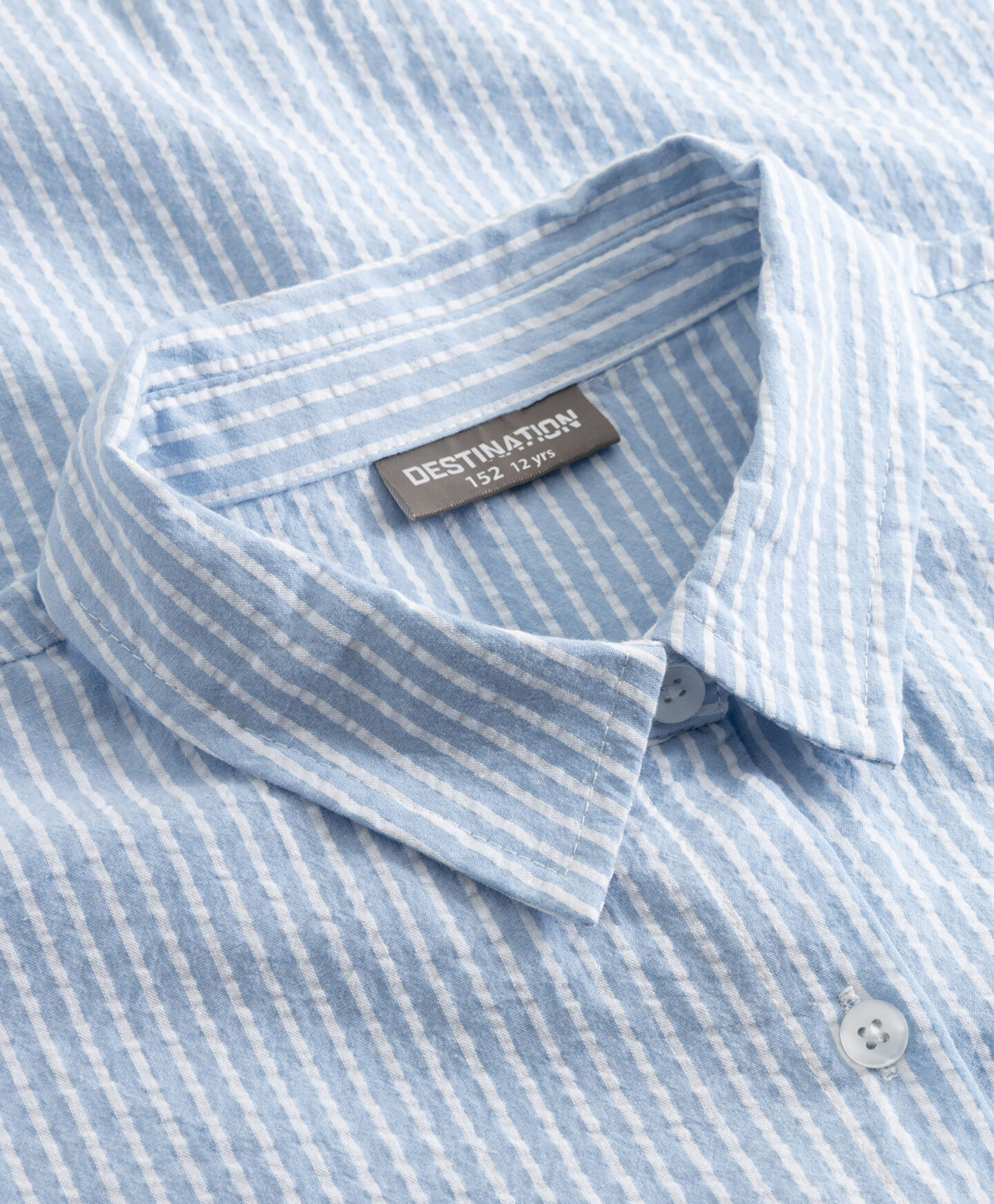 Детската тениска от 100% памук е класика в морски стил, която никога не омръзва. Вечната комбинация от бяло и синьо с елегантна яка създава тоалет, идеален за всеки повод. Тениската е изработена от материал, който позволява на кожата да диша, грижейки се за комфорта на вашето дете през целия ден. Изглежда страхотно, както пъхната в пола, така и в дънки, свободно драпирана върху тениска.