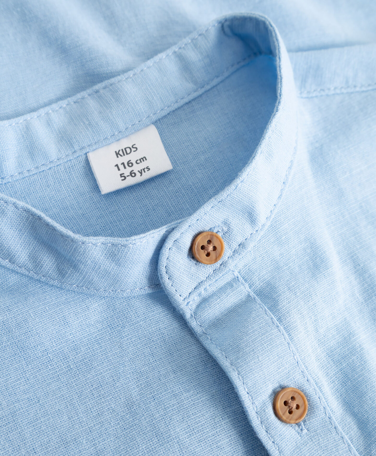 Тази светла риза за момче в цвят деним е идеална за семейни събирания. Добавянето на лен осигурява дишане. Кафявите копчета и мини яка с изправена тапицерия контрастират със синьото на ризата, придавайки ѝ по-официално и модерно усещане. Практичните копчета на ръкавите позволяват лесно навяване и закопчаване, издигайки визията до по-небрежен вид. Ризата се съчетава добре както с дънки, така и с по-елегантни панталони.