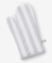 Сивата раирана ръкавица за фурна е незаменим аксесоар във всяка кухня. Тя перфектно предпазва ръцете от изгаряния по време на готвене и печене, осигурявайки безопасност и комфорт при употреба. Тя ще бъде и естетически декоративен елемент в кухнята. Предлагат се различни шарки.