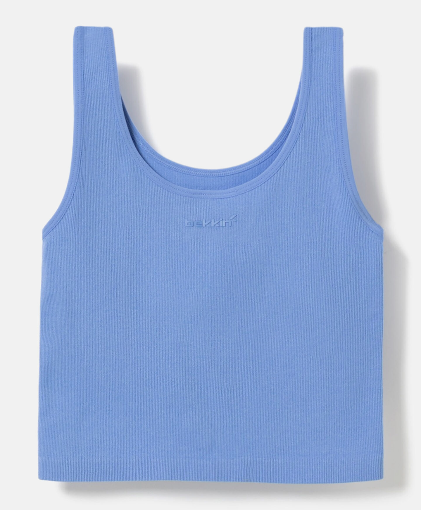 Синият топ Bekkin за момичета е предназначен за интензивни тренировки. Може да се носи самостоятелно или като слой под други дрехи. Простият, универсален дизайн без ръкави позволява максимална свобода на движение и дишане. Топът може да се комбинира с различни дрехи – от къси панталони и поли до дънки – за създаване на разнообразни ежедневни и спортни визии. Предлагат се и съответстващ къс клин за колоездене.