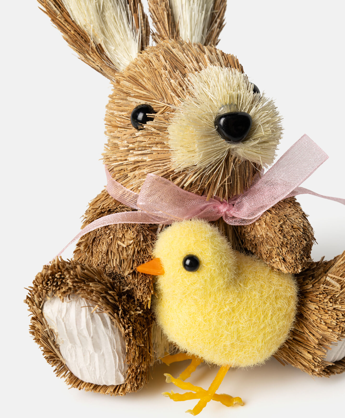 Сламеното зайче с пиленце е очарователна декорация, частично изработена от естествени материали, която се вписва прекрасно както в рустик, така и в модерен интериор. Зайчето е леко, издръжливо и напълно безопасно за деца и домашни любимци. То е и прекрасен подарък за всеки, който харесва великденски акценти.