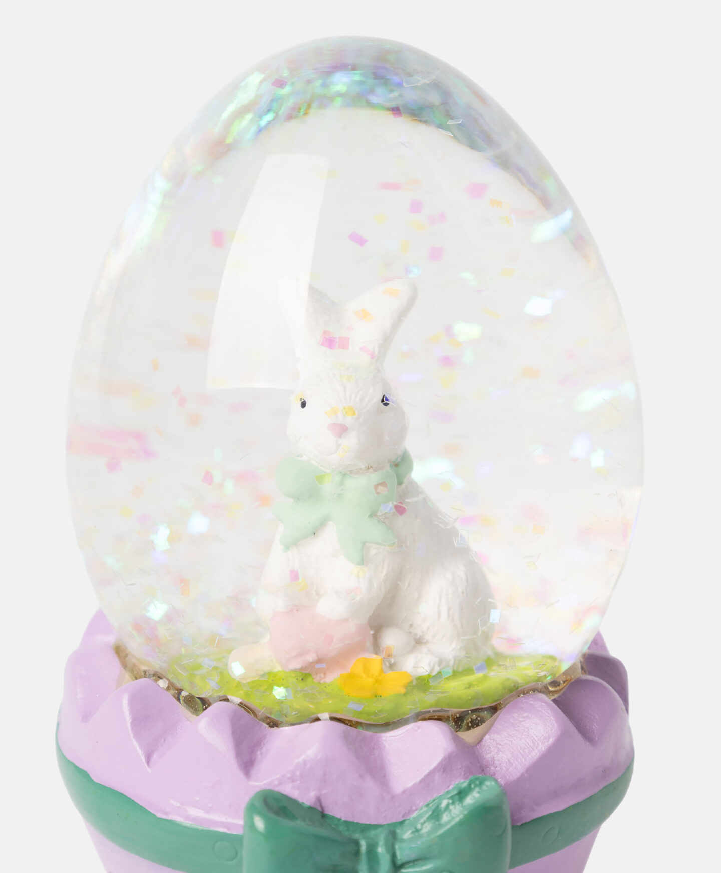 Този снежен глобус с изображение на зайче и великденско яйце е очарователно допълнение към всеки интериор. Просто я разклатете и частиците, затворени вътре, започват да танцуват весело около зайчето. Това е носталгична декорация, която ще се хареса както на деца, така и на възрастни. Предлага се в различни дизайни.