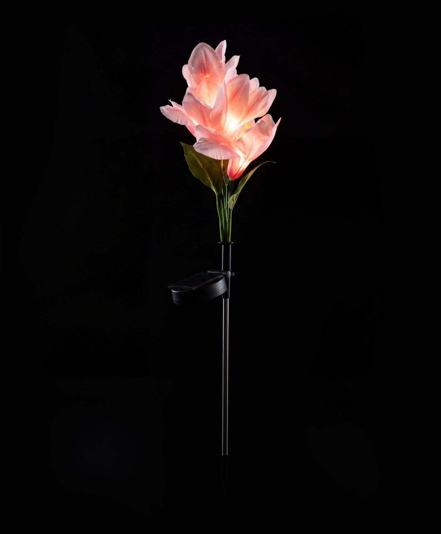 Соларна лампа с цвете на кол е елегантна и издръжлива декорация на пространството около твоя дом. Тя е снабдена с красиво изработено изкуствено цвете в живи цветове, което се осветява от LED всяка вечер, създавайки магическа атмосфера в градината, на терасата или балкона. Захранвана от слънчева енергия благодарение на вграден соларен панел, лампата работи без кабели и батерии. Колът се забива лесно в земята, което позволява бърз монтаж на лампата на избраното от теб място в градината, цветна леха или в саксия. Лампата се включва автоматично привечер и се изключва призори, осигурявайки осветление без нужда от поддръжка през цялата нощ.