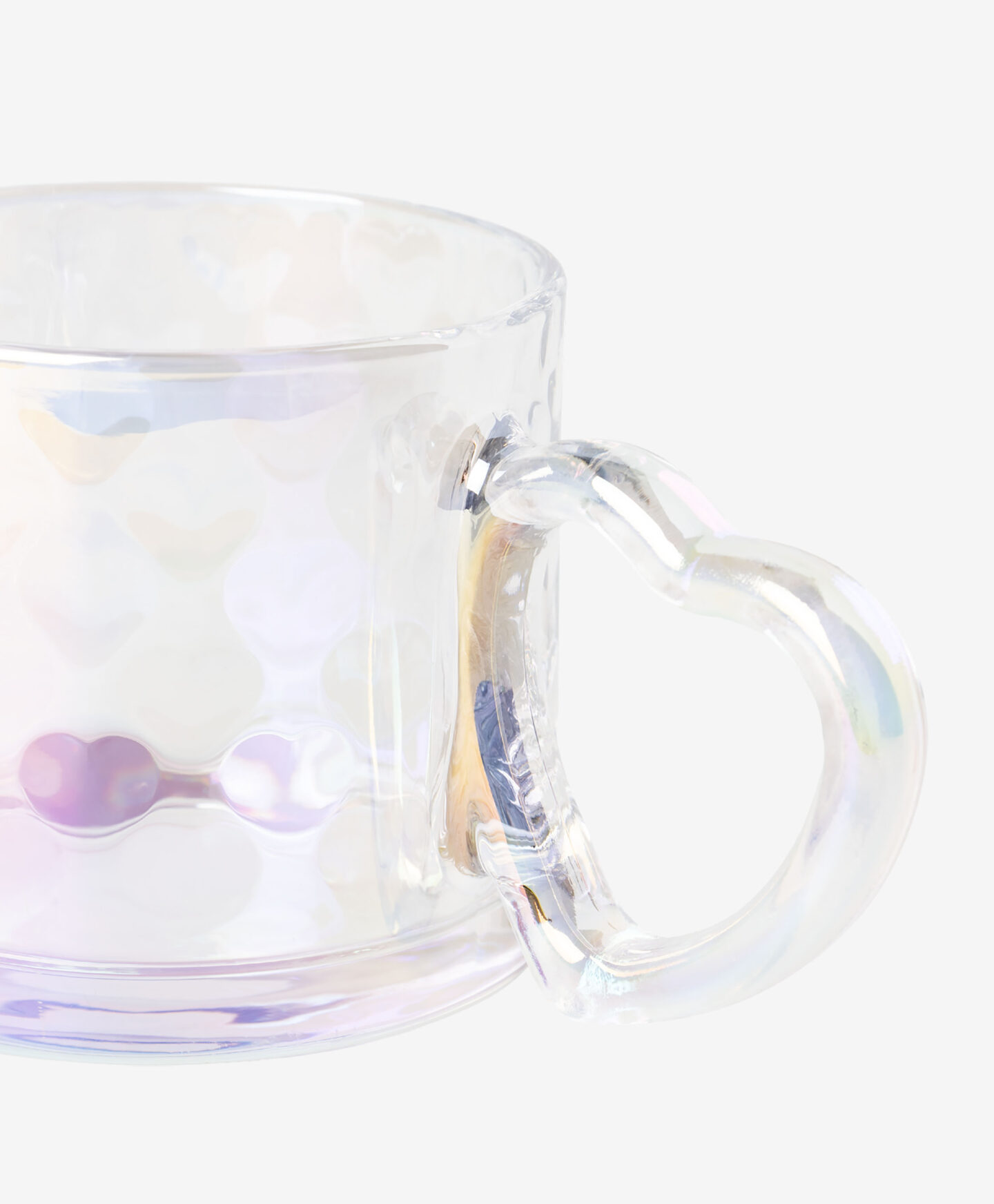 Стъклената чаша с дръжка във формата на сърце е идеална за вашия ежедневен ритуал с кафе или чай. Холографският ефект кара чашата да се откроява от останалите съдове, а оригиналната форма на дръжката привлича погледа, добавяйки романтичен щрих към всяка напитка.