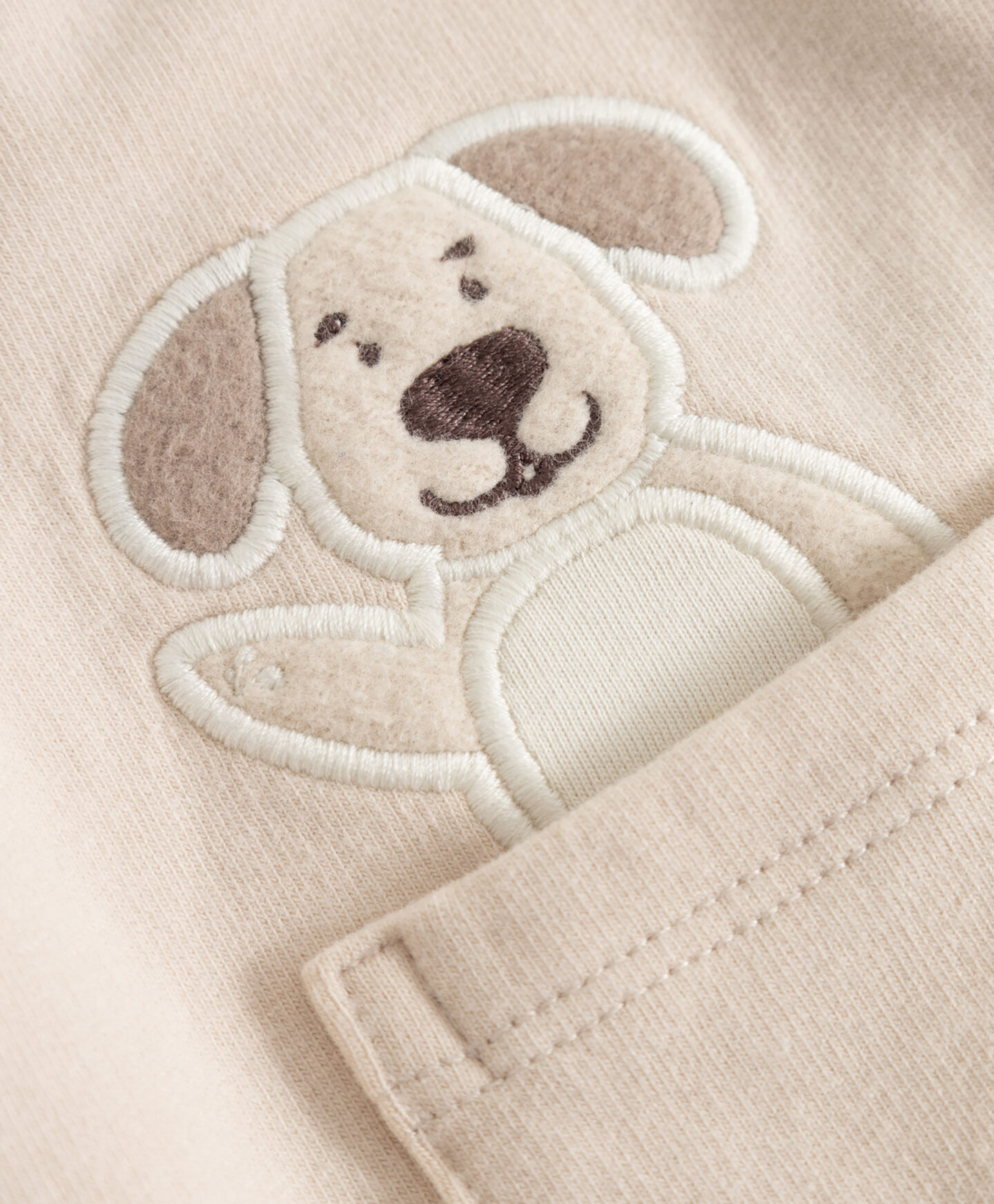 Бебешкият суичър за момче се закопчава с удобен цип, което улеснява обличането на вашето мъниче. Очарователният елемент с кученце, което се подава от джоба, ще добави радост към времето ви заедно и ще изглежда красиво на снимките. Мекият материал с високо съдържание на памук е нежен към чувствителната бебешка кожа.