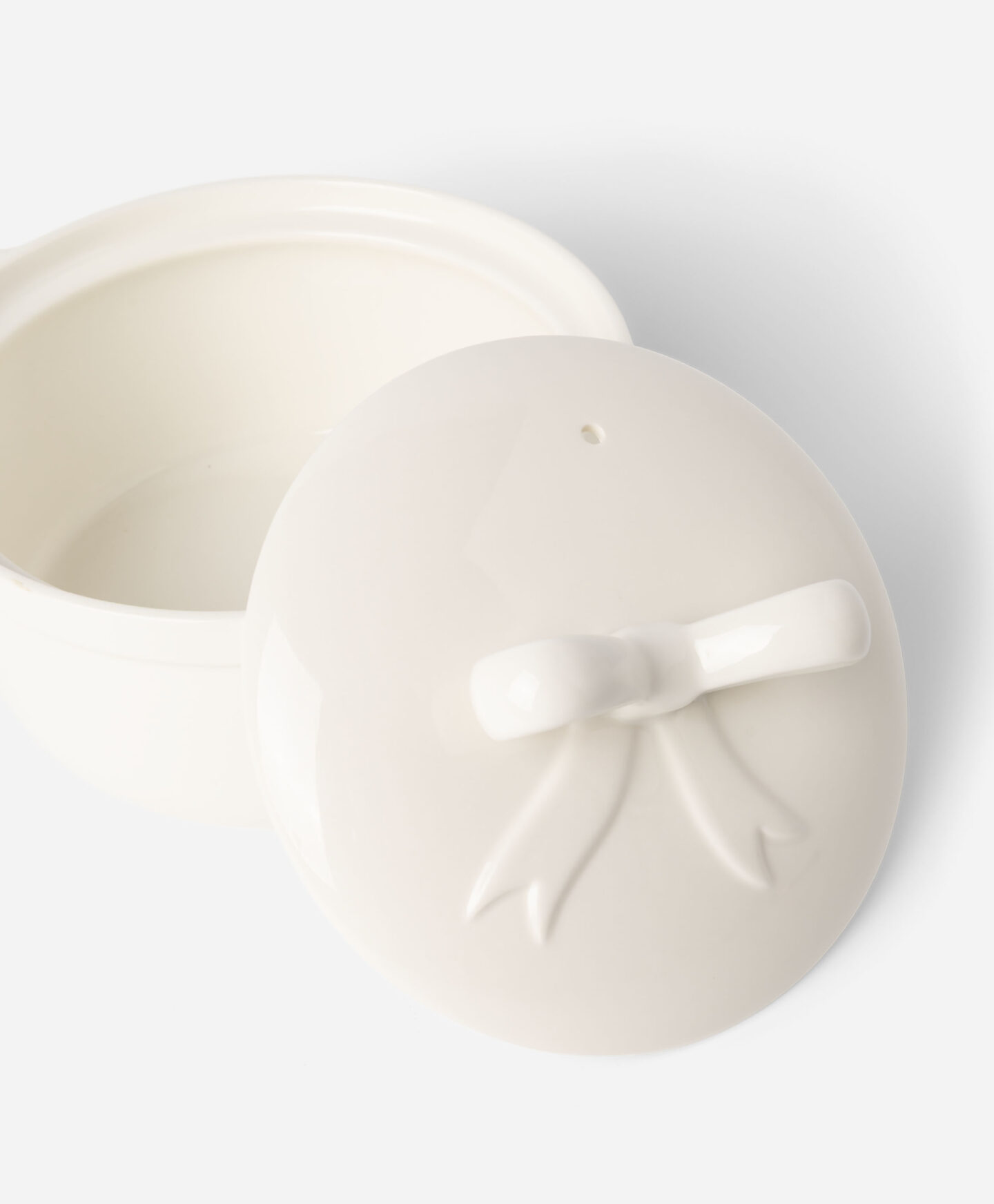 Тавата за печене с капак, украсен с панделка, е идеална за приготвяне и сервиране на гювечи, десерти или ястия в една тенджера. Порцеланът New Bone China осигурява равномерно разпределение на топлината, гарантирайки перфектни кулинарни резултати. Капакът с декоративна панделка добавя чар към ястието и го прави стилно на всяка маса.: