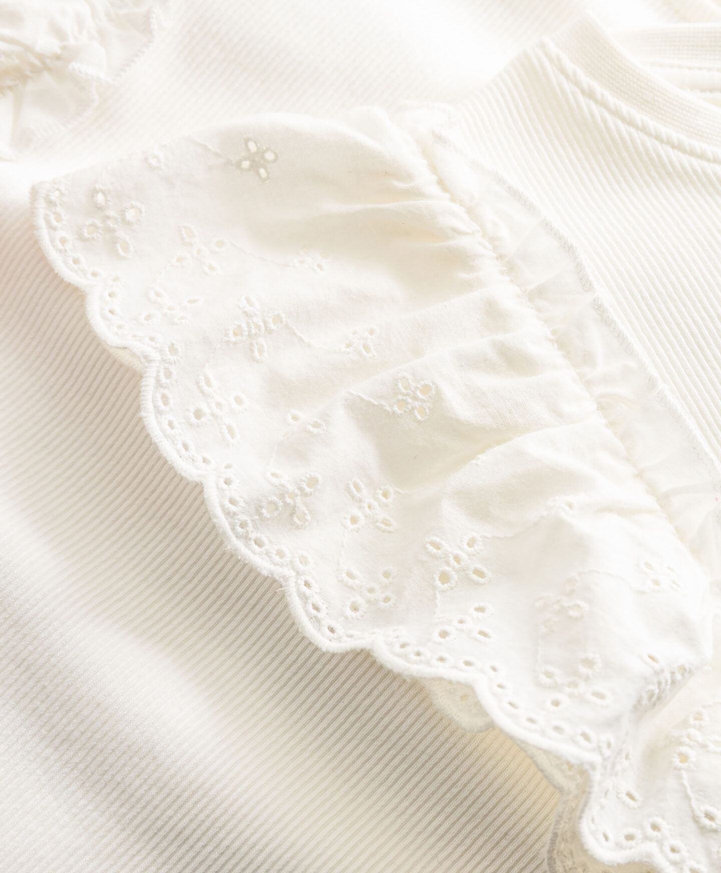 Тази тениска за момичета е перфектна алтернатива на класическата тениска. Вместо класически ръкави, тя е с нежни, ефирни волани. Те добавят лекота към тениската и я карат да пада красиво по раменете, придавайки на фигурата момичешки чар. Материята е мека и приятна за кожата.