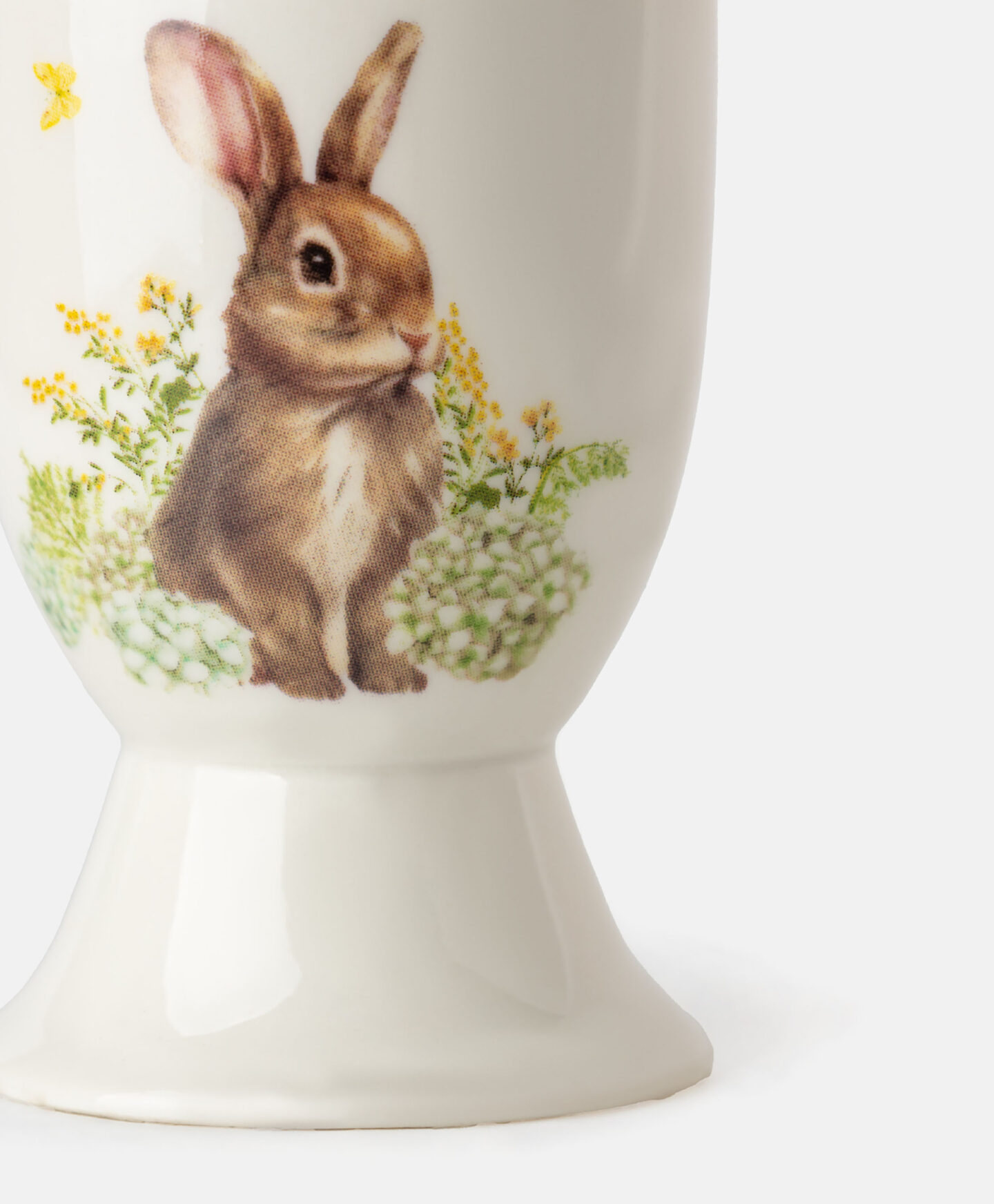 Чашата за яйца с мотив на зайче има очарователен великденски характер, но е идеална и за ежедневна употреба. Тя предлага атрактивен начин за сервиране на рохко сварени яйца, което ги прави по-лесни за консумация, като същевременно поддържа масата подредена. В колекцията се предлагат още прибори за хранене със същия мотив.