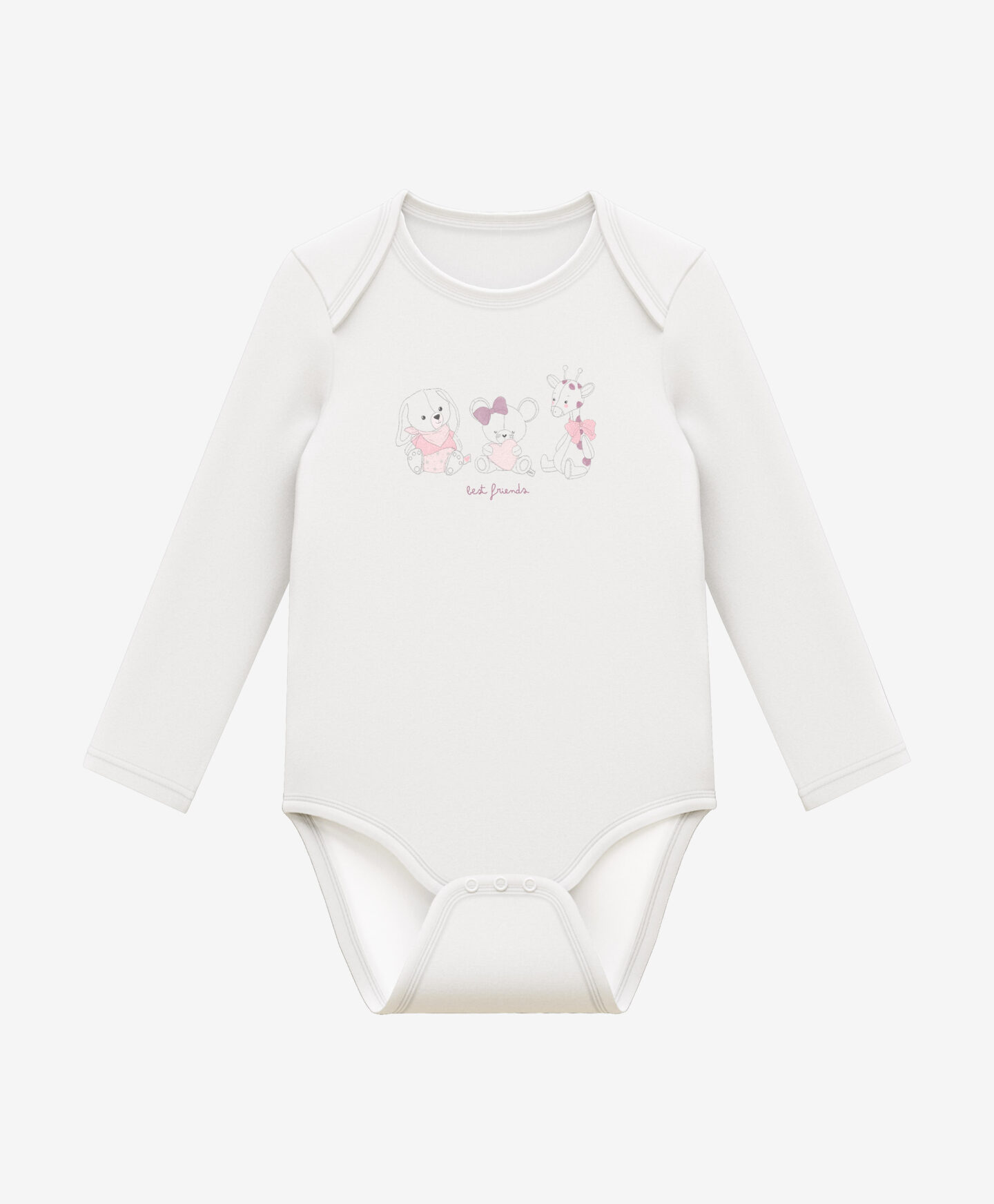 5-pak body niemowlęcych dziewczęcych 100% bawełny pokochają małe miłośniczki zwierzaków. Praktyczne zapięcie na napy ułatwi szybkie przewijanie i przebieranie dziecka. Wzory z elementami zwierzęcych pluszaków na wybranych body dodają im charakteru. Body wykonane są z oddychającej i miłej w dotyku bawełny, co zapewnia komfort noszenia.