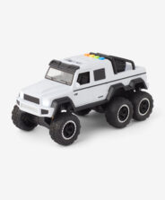 Бялата офроуд кола е модел със здрава конструкция, идеален за игра на различни повърхности. С повече колела изглежда масивен и реалистичен. Това е предложение за деца, които обичат високопроходимите автомобили и динамичните игри на полето. Включени батерии.