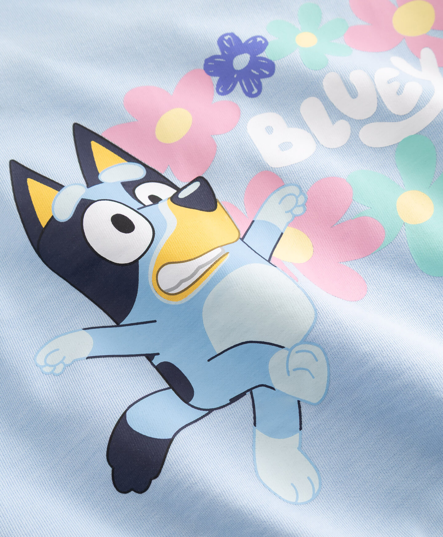 Bluey суитшърт за момичета с памучен плат, който се навлича през главата, е в красив син нюанс. Голям принт отпред, изобразяващ любимия анимационен герой, привлича погледа и го отличава. Той е удобен избор за предучилищна възраст, детска площадка или релакс у дома. Предлагат се и подходящи спортни панталони.