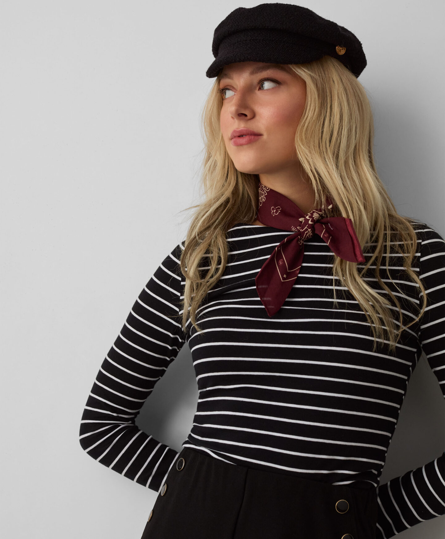 Тази дамска блуза с дълъг ръкав и райета изглежда страхотно в комбинация с класически дънки. Тя е лека, приятна на допир и дишаща. Ще бъде перфектен избор както за работа, така и за отдих у дома. В нашата оферта ще намерите още цветови варианти на тениски с райета.