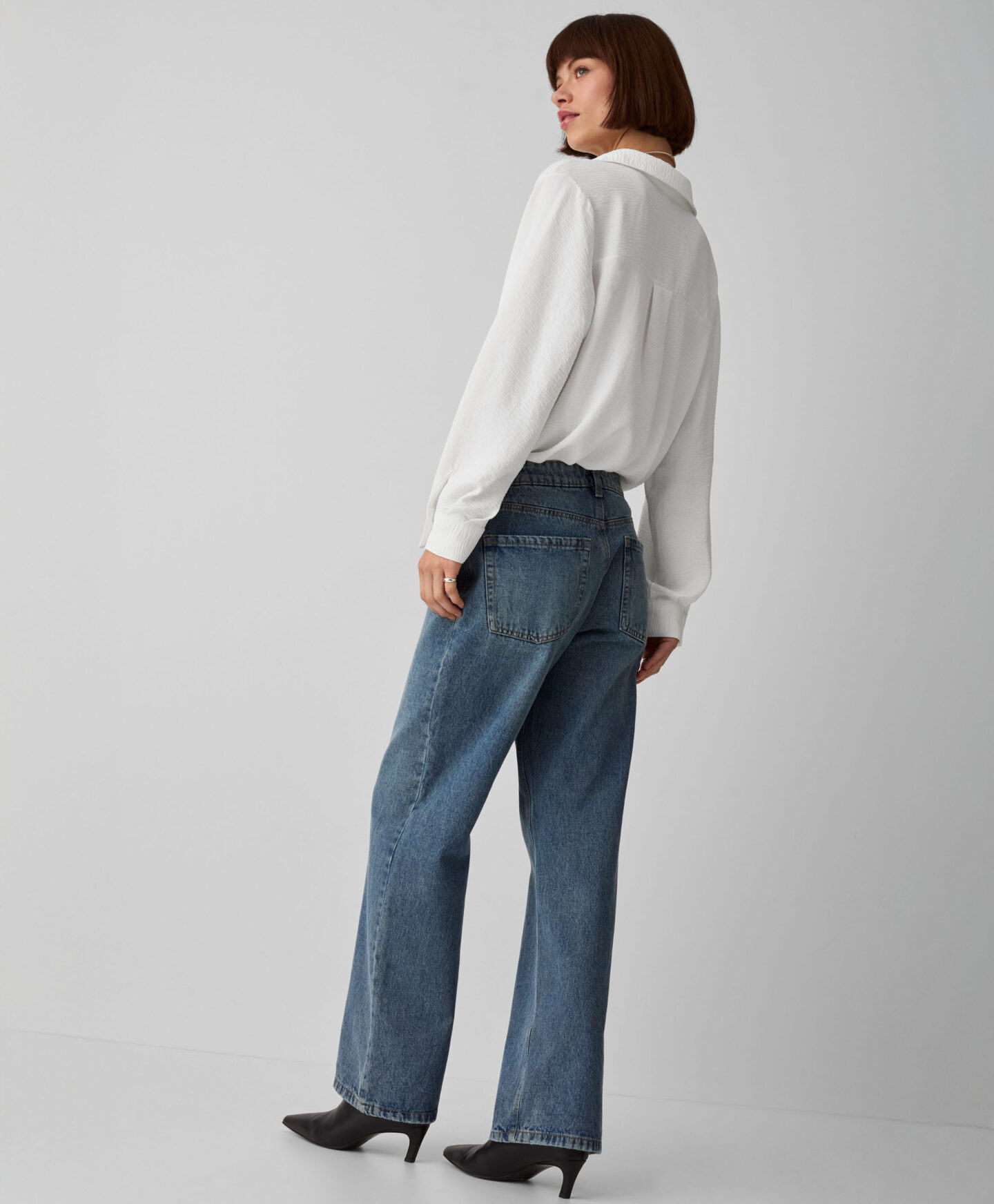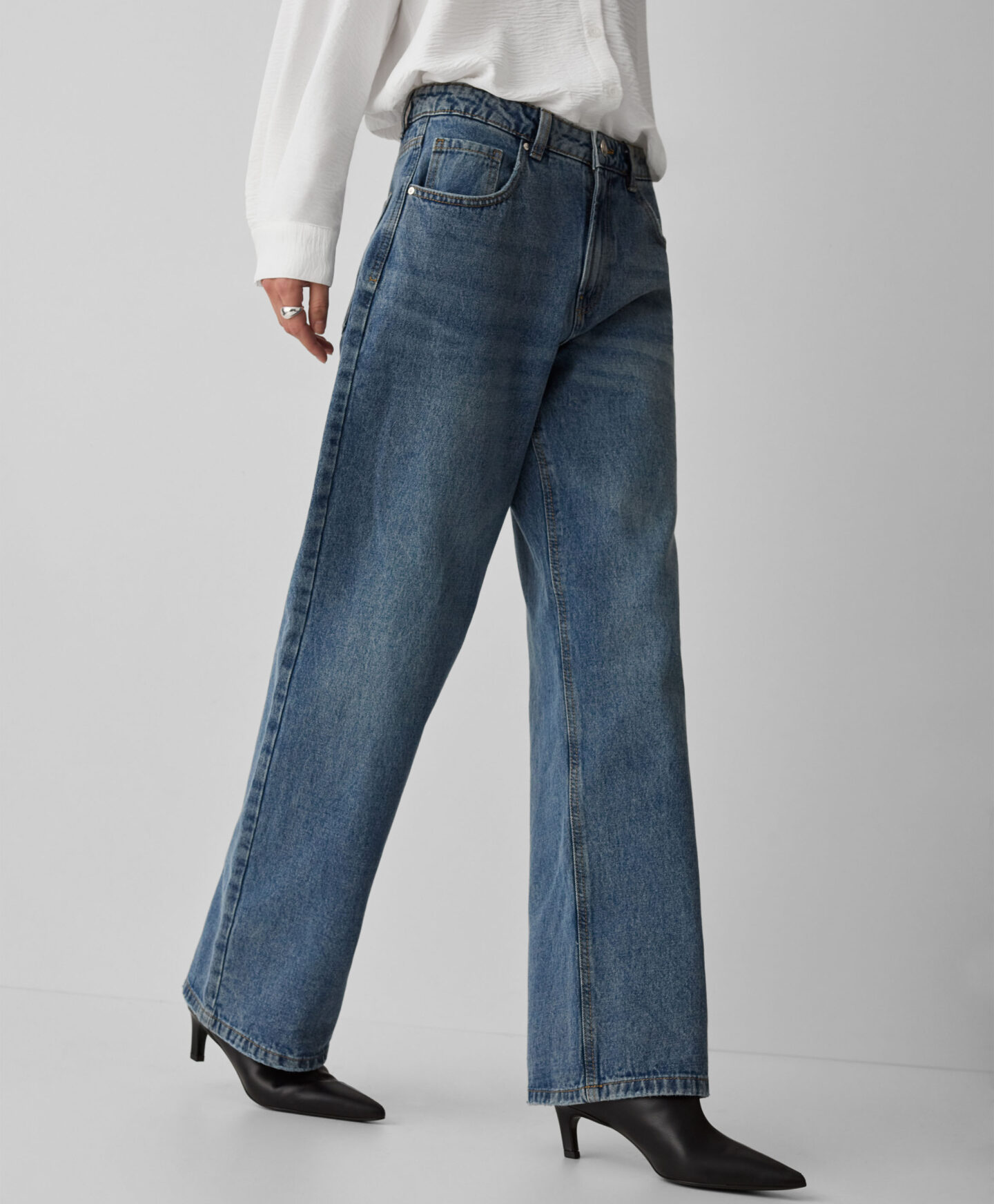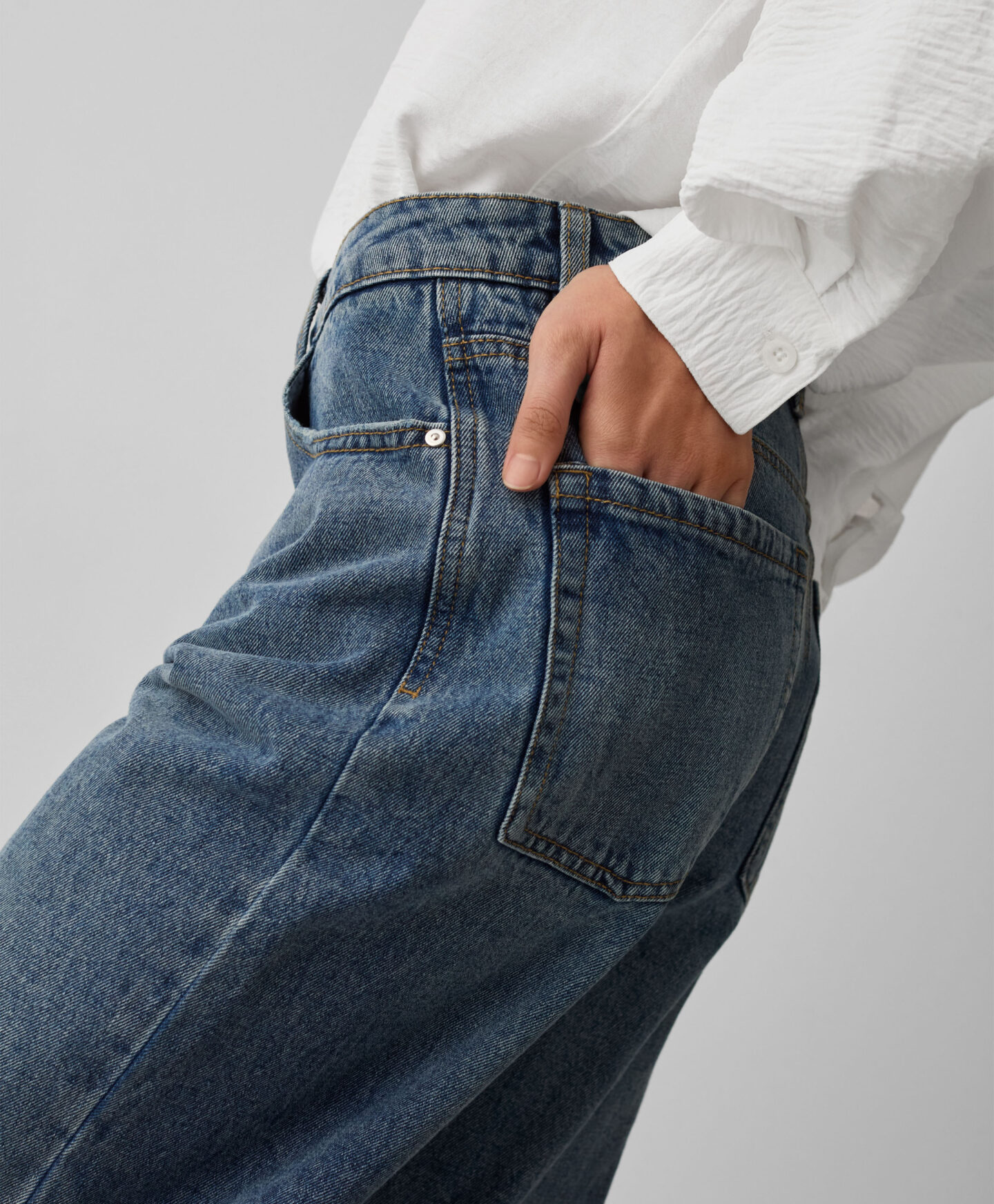 Дамските дънки от 100% памук с широки крачоли са модният хит на сезона. Изглеждат страхотно както с прилепнали блузи, така и с по-широки модели. Класическият им цвят ви позволява да ги комбинирате с много дрехи от гардероба си. Те са универсални, удобни и лесни за поддържане.