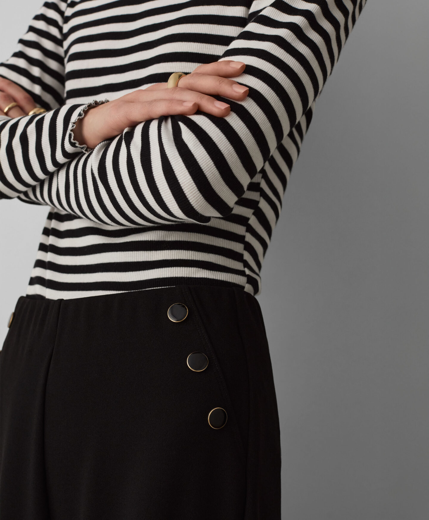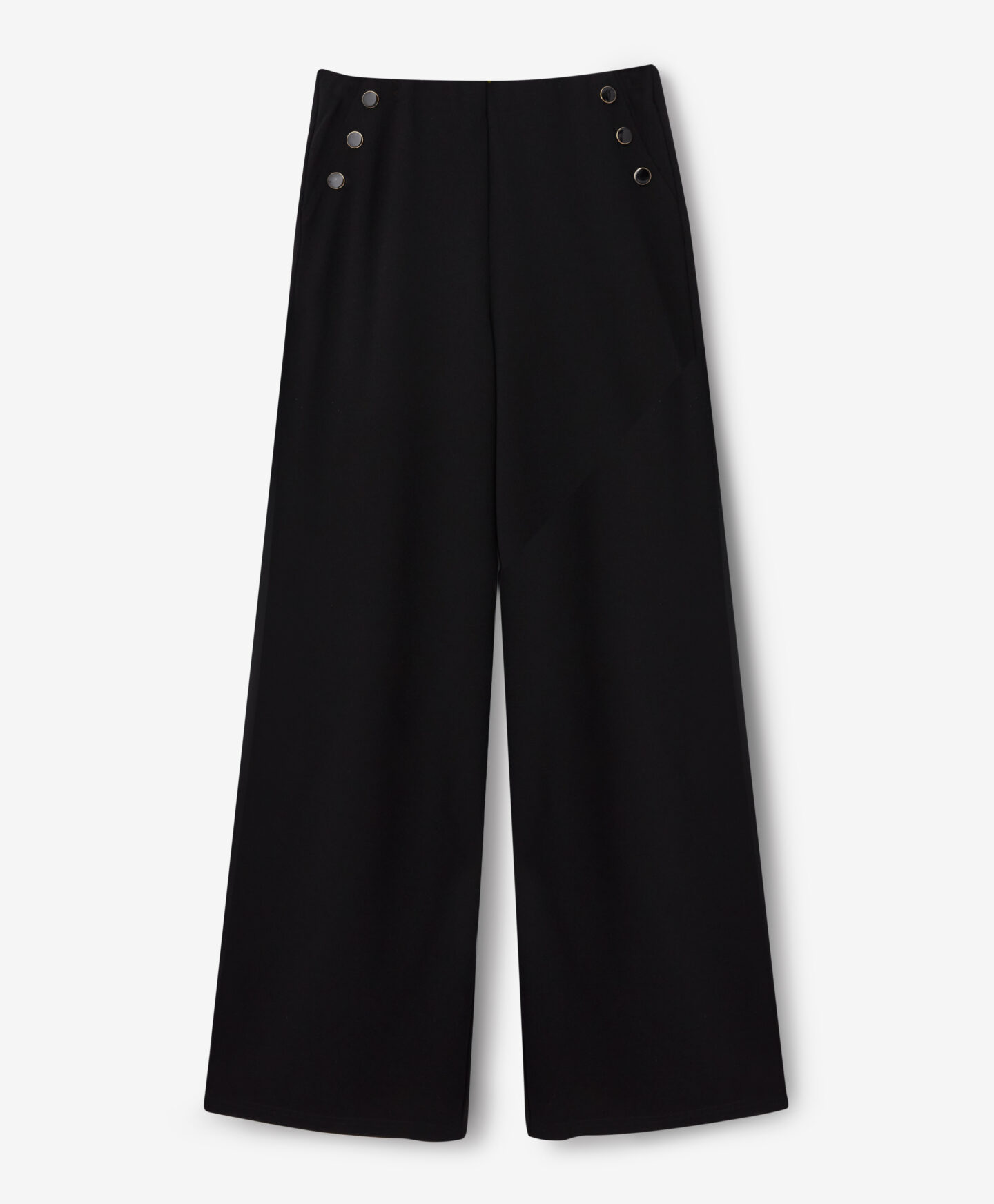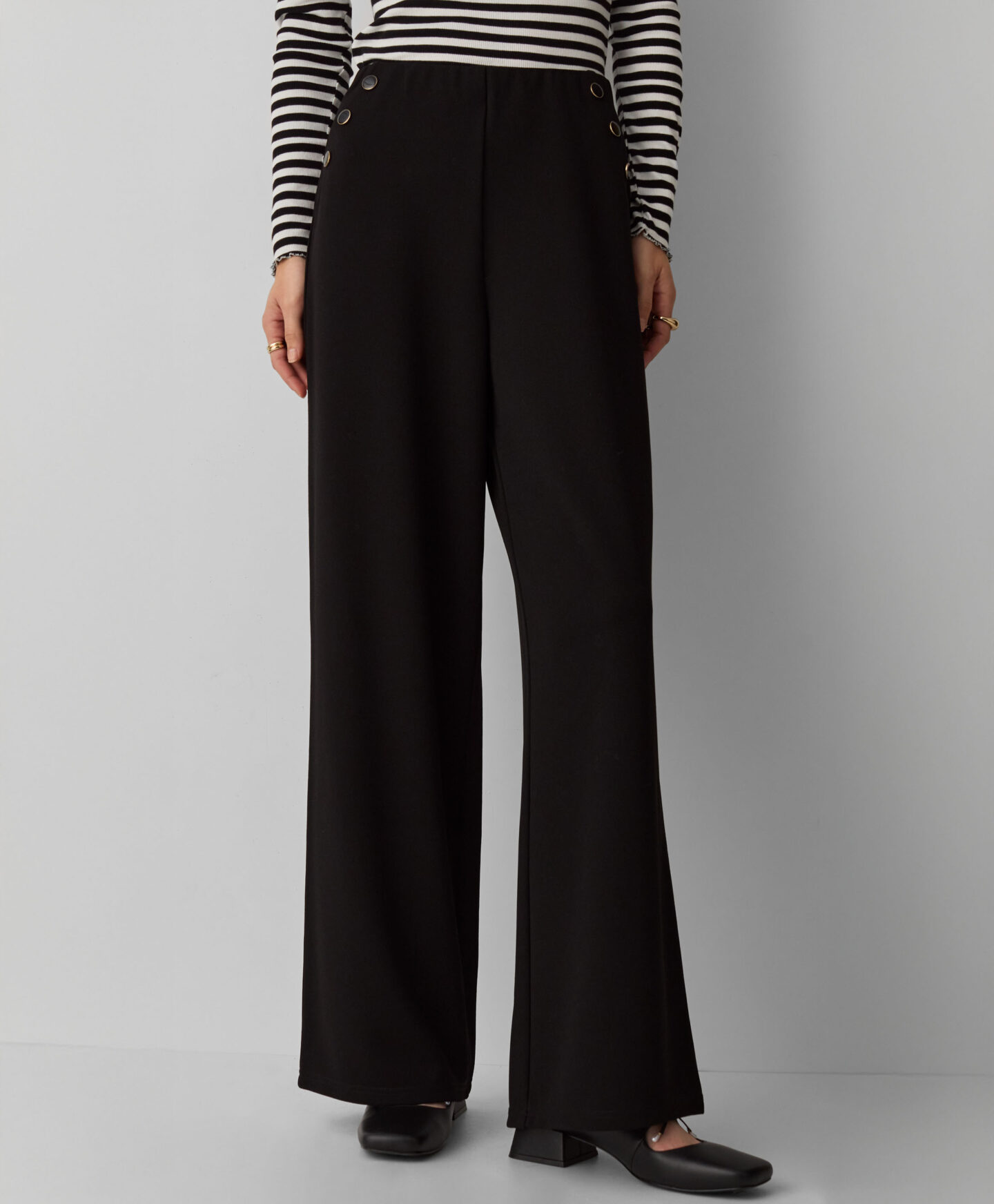 Дамските панталони с копчета и широки крачоли ще ви позволят да изглеждате стилно в офиса и на по-официални срещи. Те са удобни, леки и приятни за носене. Декоративните копчета привличат погледа и придават моден акцент на всякакви тоалети. Широките крачоли осигуряват свобода на движение.
