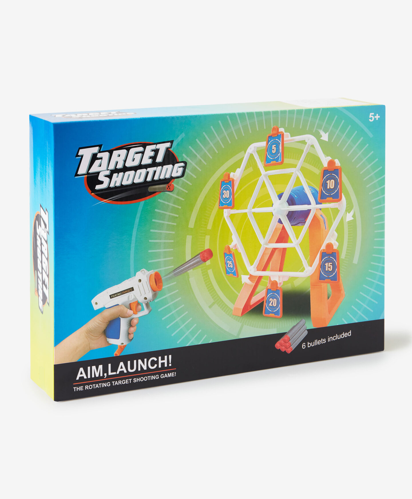 Играта с движещи се мишени включва стрелба по движещи се мишени, което е предизвикателство дори за опитни играчи. Упражнява точност, концентрация и координация око-ръка. Това е чудесен вариант за деца, които обичат състезанието и активната игра. Батериите се продават отделно.
