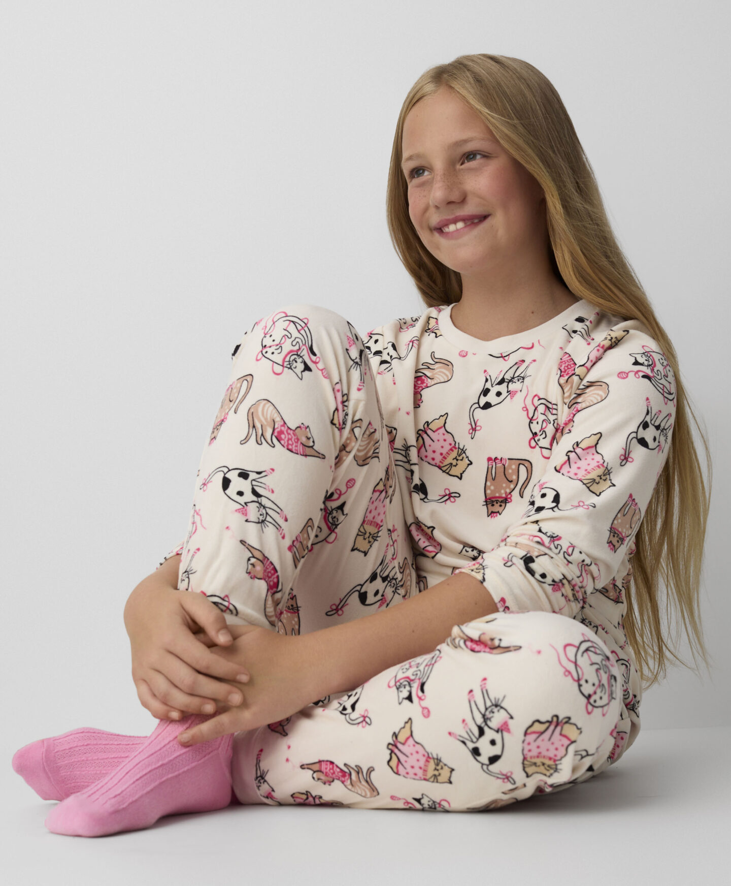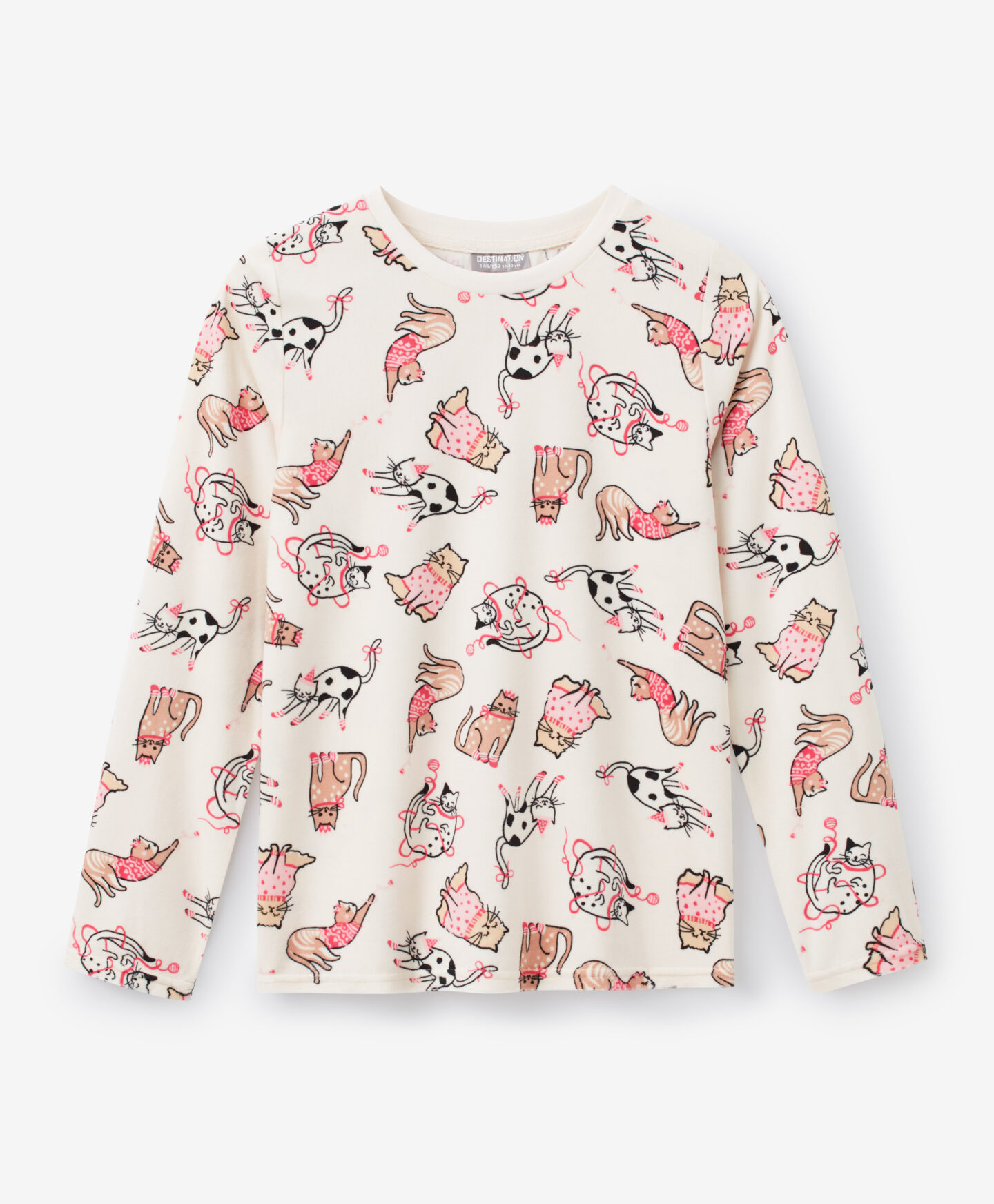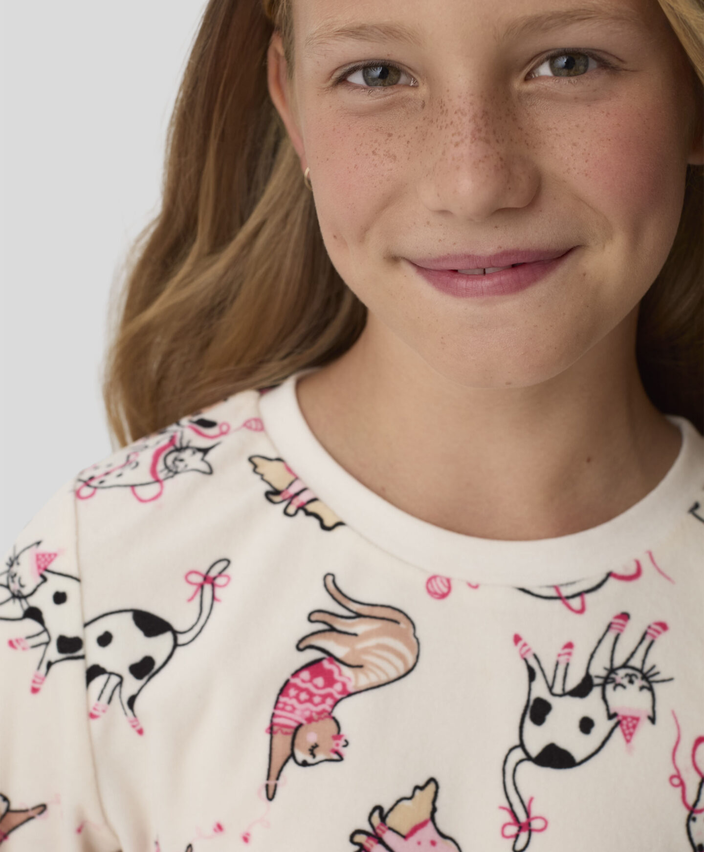 Тези кадифени пижами за момичета с котешки мотив осигуряват комфортен сън и свобода на движение. Изработени от мек, приятен на допир кадифе, те осигуряват топлина и уют. Закачливите шарки с котенца ще накарат всяко момиче да се стреми да ги облече преди лягане. Идеални за по-хладните нощи, те са перфектен избор за любителите на котки.
