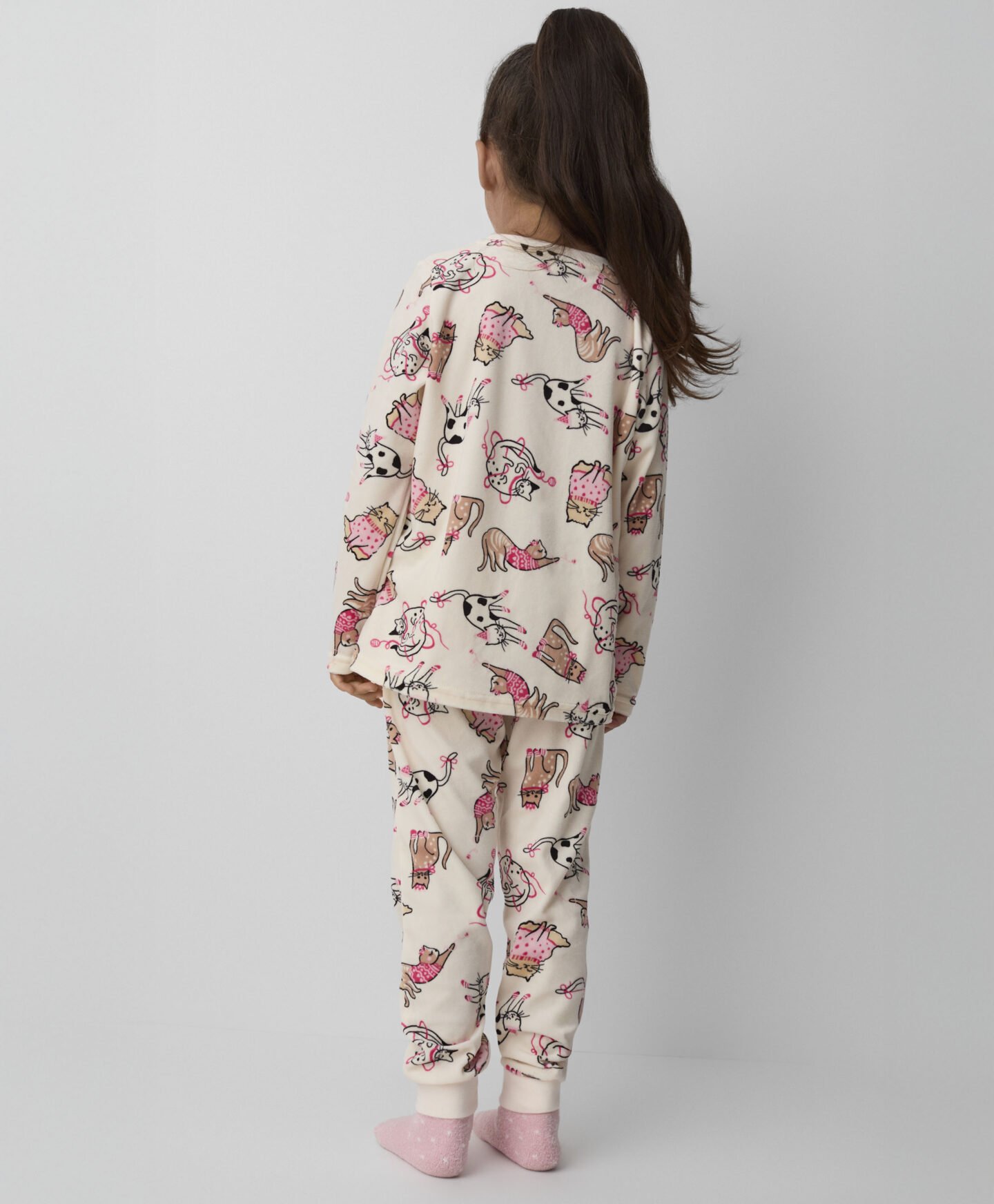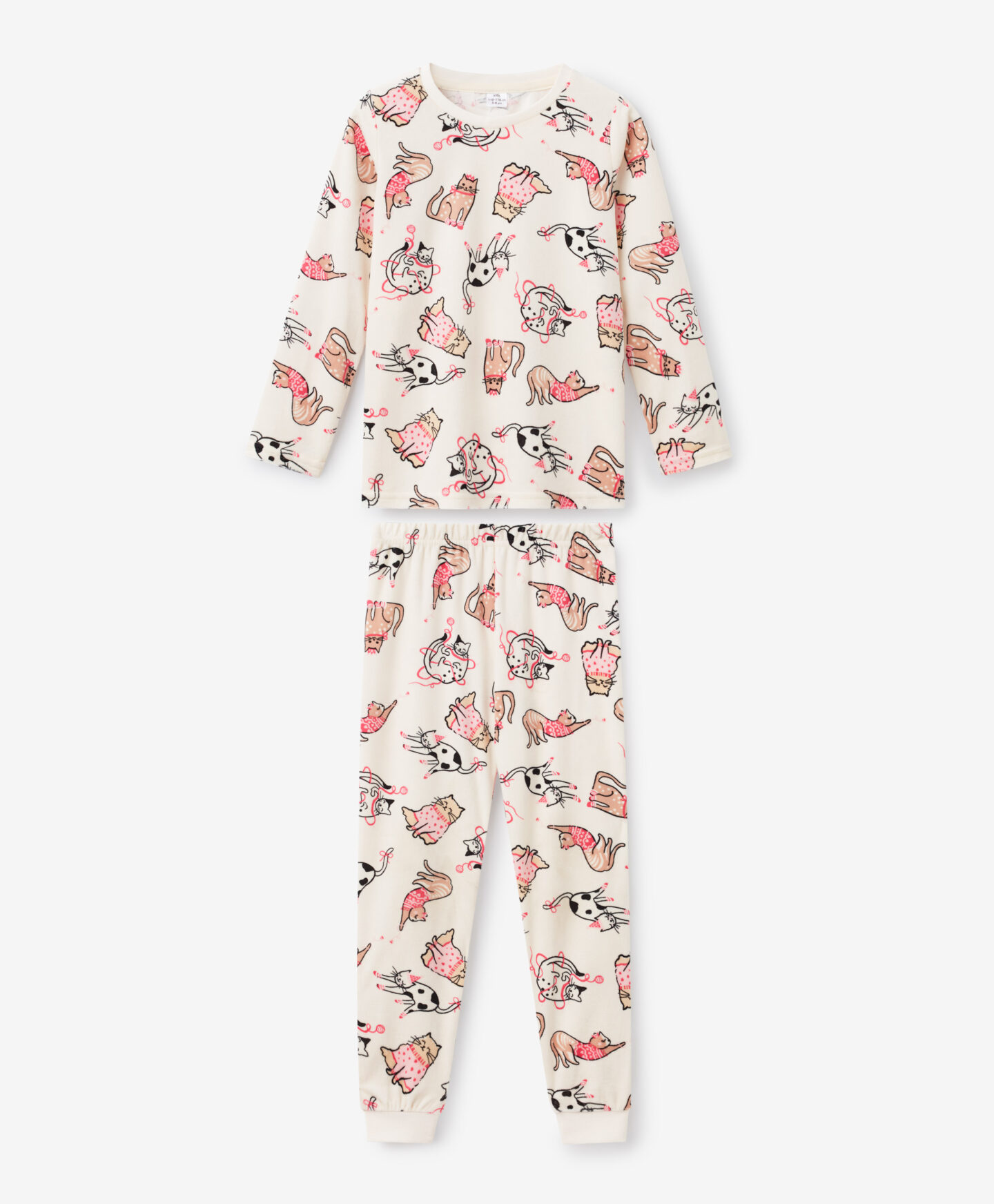 Тези кадифени пижами за момичета с котешки мотив са перфектният избор за малките любители на животни. Изработени от мек, приятен на допир кадифе, те осигуряват комфортен сън и свобода на движение. Закачливите шарки с котенца ще накарат всяко момиче да се стреми да ги облече преди лягане. Идеални за по-хладните нощи, те осигуряват топлина и уют.