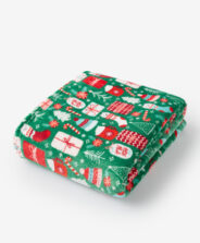 Зеленото коледно одеяло съчетава функционалността на ежедневното одеяло с декоративния характер на коледния текстил. Десенът с къщички, шапки на Дядо Коледа и подаръци придава весело, зимно настроение. Това е допълнение, което ще ви свърши добра работа като компаньон за мързеливите следобеди и в същото време ефектна декорация на интериора през декември.