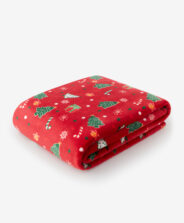 Червеното коледно одеяло Ви обгръща в мекота и създава уютна атмосфера през зимните дни. Декорациите под формата на коледни елхи, джинджифилови сладки и снежинки му придават радостен характер, който идеално подчертава коледната атмосфера. Това е практичен аксесоар, който ще ви свърши добра работа както по време на семейни срещи, така и вечерна релаксация с чай.