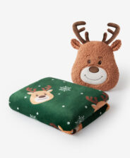 Зеленото одеяло с възглавница е вдъхновено от коледните цветове, които внасят хармония в интериора. Приятната на допир материя осигурява комфорт, а възможността да се скрие във възглавница го прави удобно и гениално решение. Това е готов подаръчен комплект.