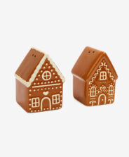 Комплектът подправки във формата на къщичка е украсен с детайли, които напомнят за джинджифилови къщички. Прозорци, покриви и фини декорации правят така сервираните подправки част от коледната аранжировка. Поставени на масата, те създават топла, семейна атмосфера по време на съвместно хранене.
