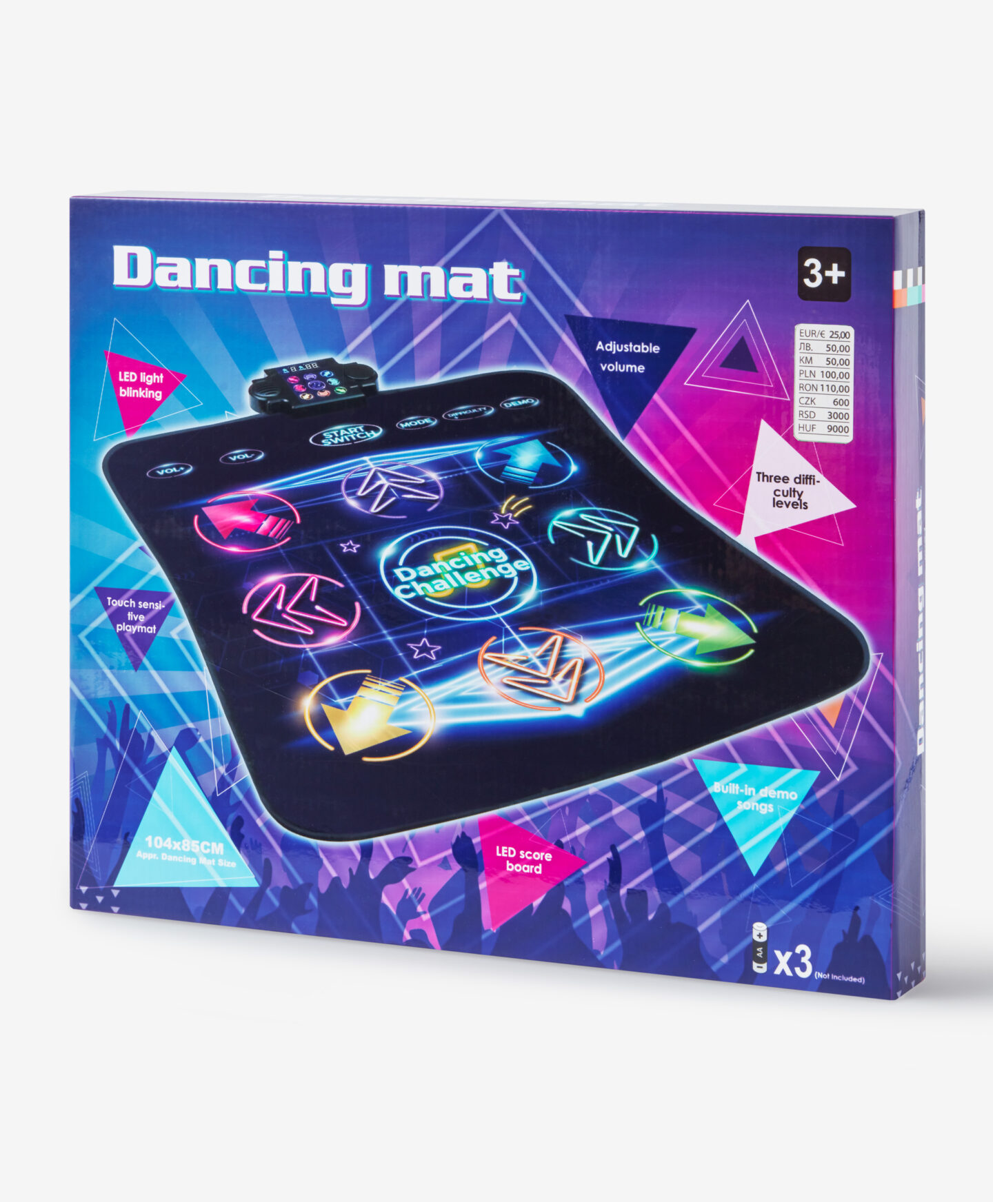 Подложката за танци е интерактивна играчка, която съчетава движение с музика. Играчите трябва да предприемат стъпки според светлините и ритъма, което осигурява голяма доза физическа активност. Това е комбинация от танц, забавление и рефлексна тренировка, идеална за прекарване на време заедно. Различни песни и нива на звука, от които да избирате.