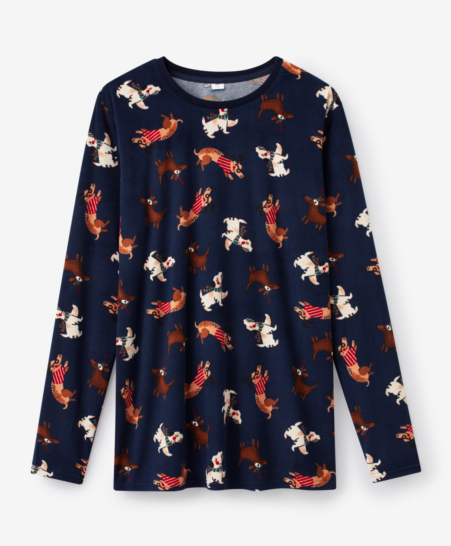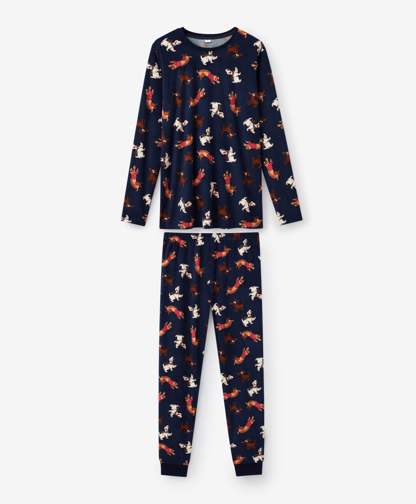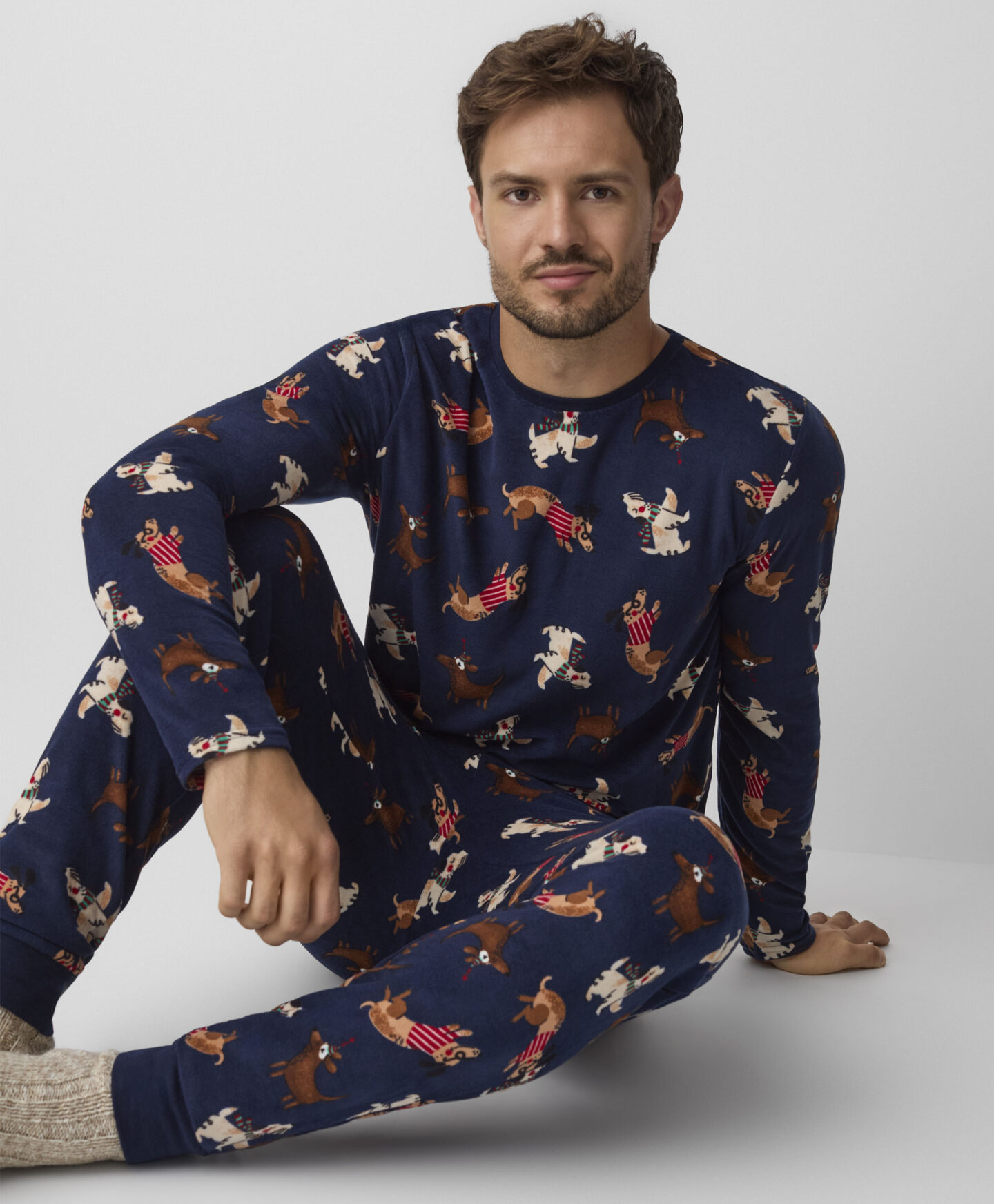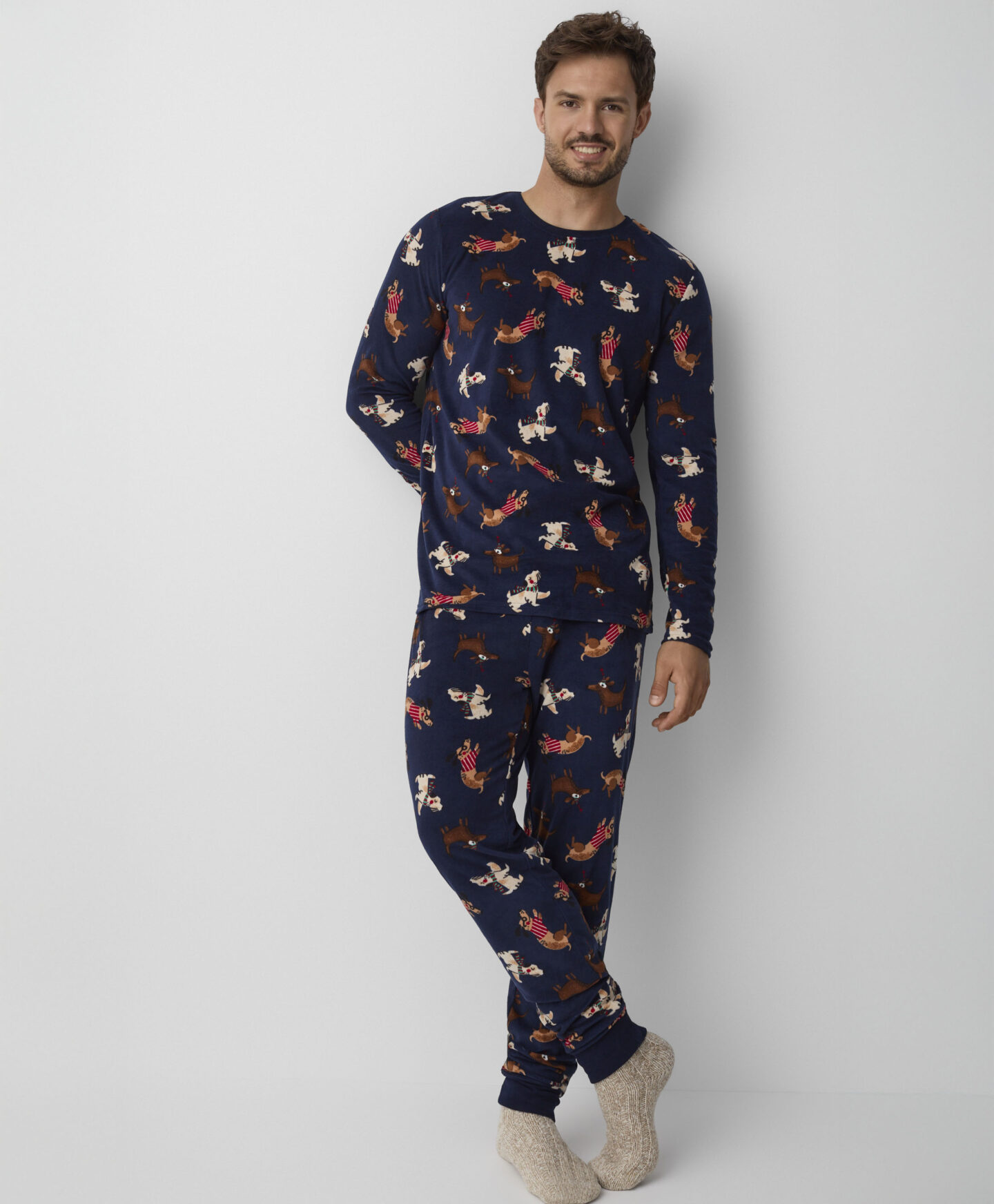 Тези мъжки кадифени пижами с кучешки мотив са идеални за по-студените дни. Изработени от мек и приятен на допир кадифе, те осигуряват топлина, комфорт и уют. Закачливите шарки с кучешка тематика ще накарат всеки да иска да ги облече преди лягане. Перфектни за любителите на кучета.