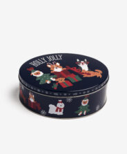 Кръглата консерва се отличава с наситения си тъмносин цвят и радостен коледен мотив. Перфектен за съхранение на сладкиши, но също и за малки подаръци или като декор за подарък. Благодарение на него дори един малък жест става вълшебен. Предлагат се различни дизайни.