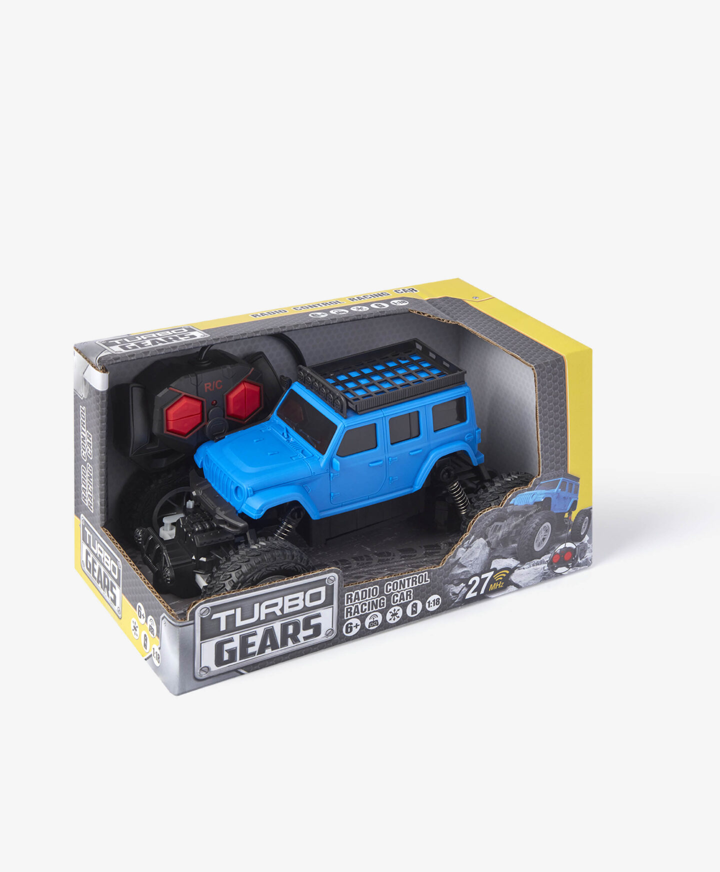 Синият високопроходим автомобил е модел с дистанционно управление, адаптиран за по-взискателни маршрути. Големите колела и здравата конструкция го карат да се справя добре на различни повърхности. Играта с дистанционното управление развива сръчността и ви доставя удовлетворение от шофирането на превозно средство.