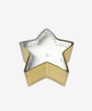 Златна ароматизирана свещ осветява интериора с топла светлина. Звездовидният му съд сам по себе си го прави декорация за маса или скрин. Това е практичен аксесоар, който съчетава декоративна функция с ароматен акцент, който внася празнична атмосфера.