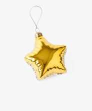 Медальон във формата на звезда е елегантен акцент върху елхата. Наситеното му червено привлича вниманието и въвежда атмосферата на класическата почивка в интериора. Това е стъклена декорация, която подчертава традицията и в същото време внася нотка модерност, създавайки последователна и ефектна композиция с други дрънкулки.