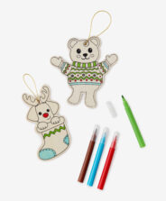 Коледна висулка с маркери ви позволява сами да украсите украсата за коледно дърво. Включените маркери в различни цветове означават, че всяко дете може да създаде уникален модел. Такива висулки развиват креативността и изглеждат красиво сред коледните светлини.