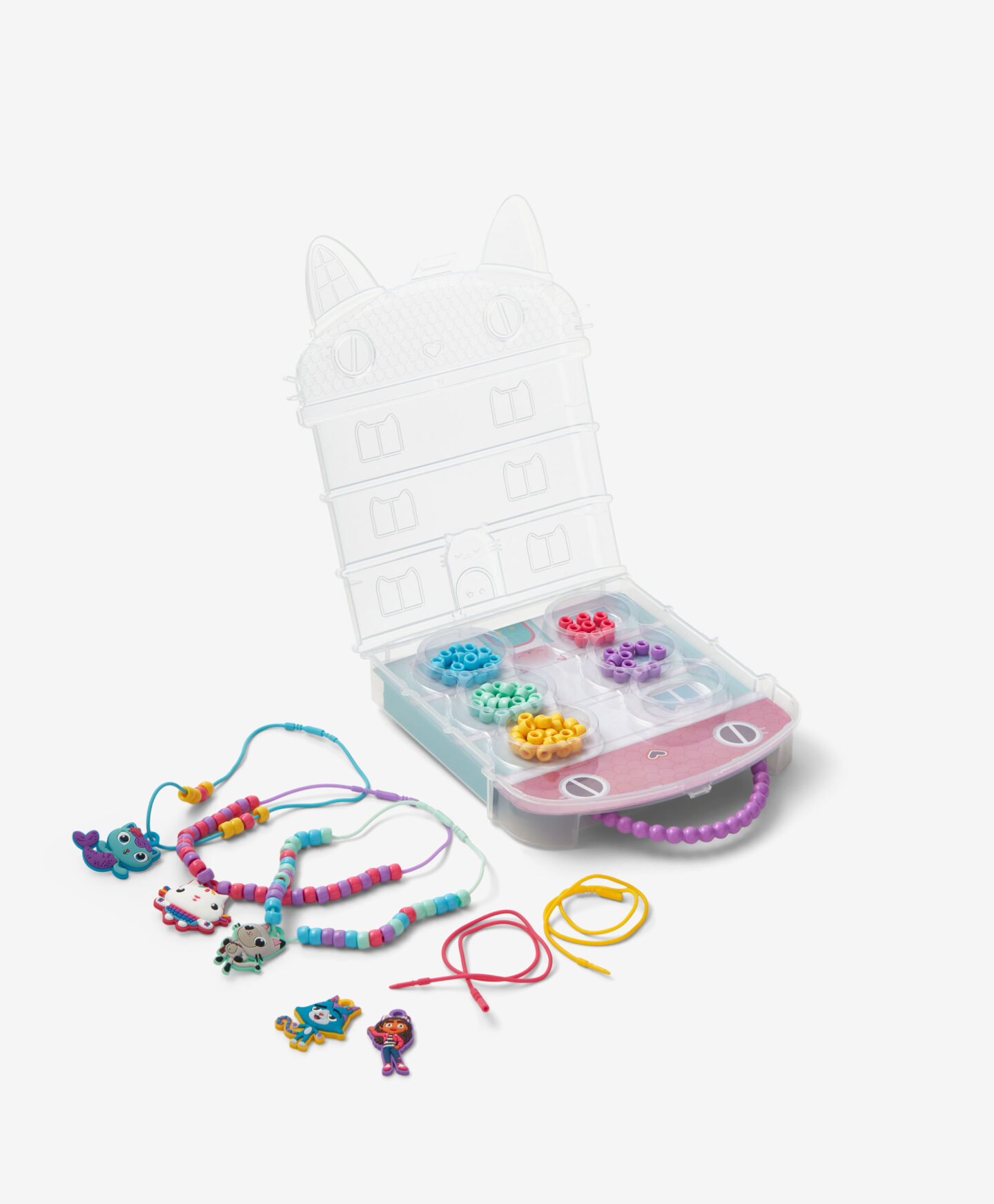 Комплектът за изработка на бижута „Къщичката на котката Габи“ в куфар е перфектен подарък за феновете на анимационния сериал. Практичната кутия с форма на котешка къщичка съдържа всичко необходимо за създаване на уникални бижута: цветни мъниста, ластици и висулки с любимите ви герои. Комплектът ви позволява да развивате ръчни умения и да развивате креативност. Подходящ за деца над 6 години.