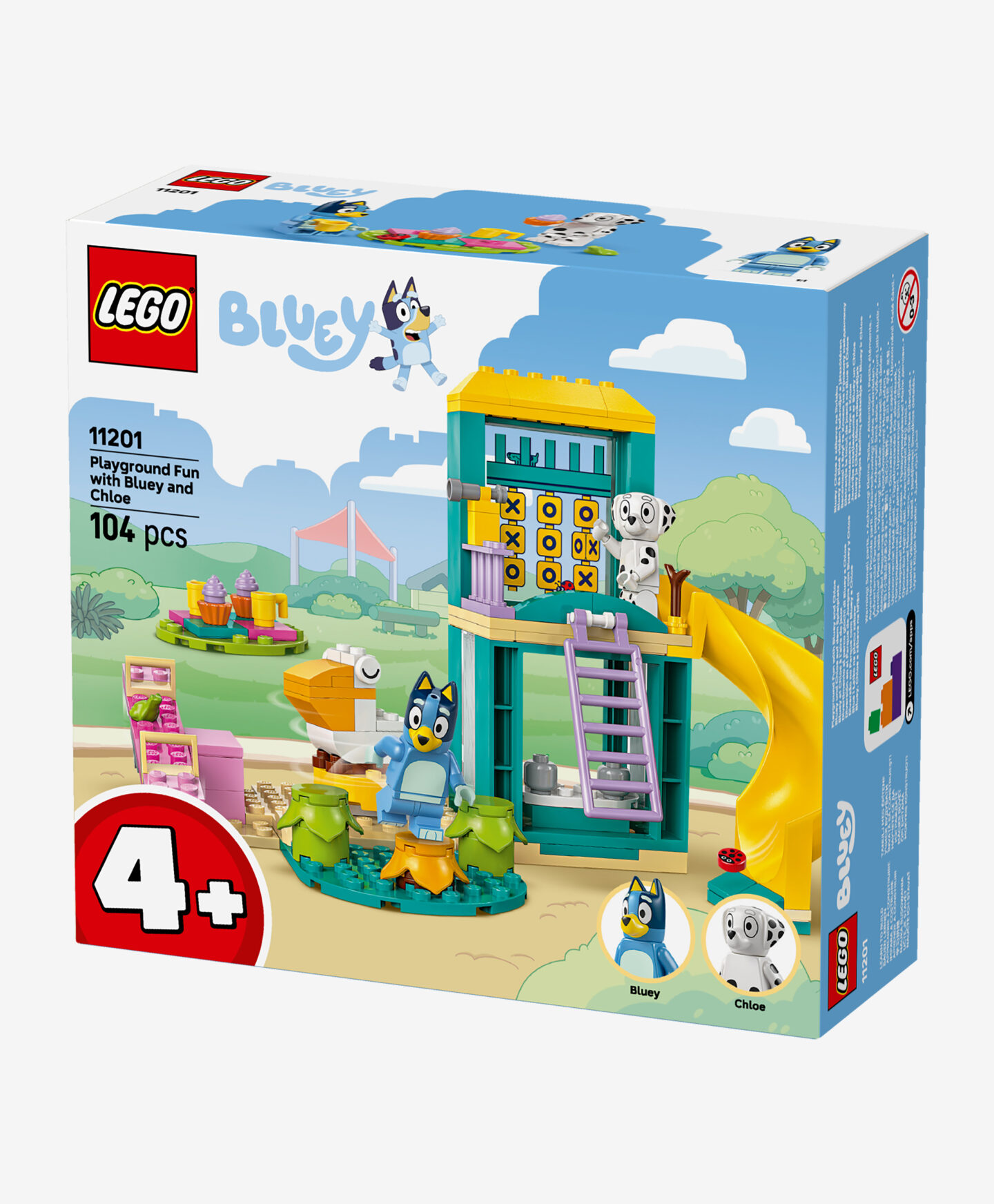 LEGO® Bluey and Patch on the Playground е комплект, идеален за малките фенове на емблематичната анимация. Съдържа две фигурки на кучета, които играят на цветна детска площадка с люлка, пързалка и въртящ се пеликан. Комплектът включва още три растения, кула с телескоп и място за пикник с напитки и сладкиши. Това е идеален подарък за деца, които обичат приключенията, който ще им позволи да играят сцени от любимите си сериали в ежедневната игра. Играчката е подходяща за деца от 4 годишна възраст.